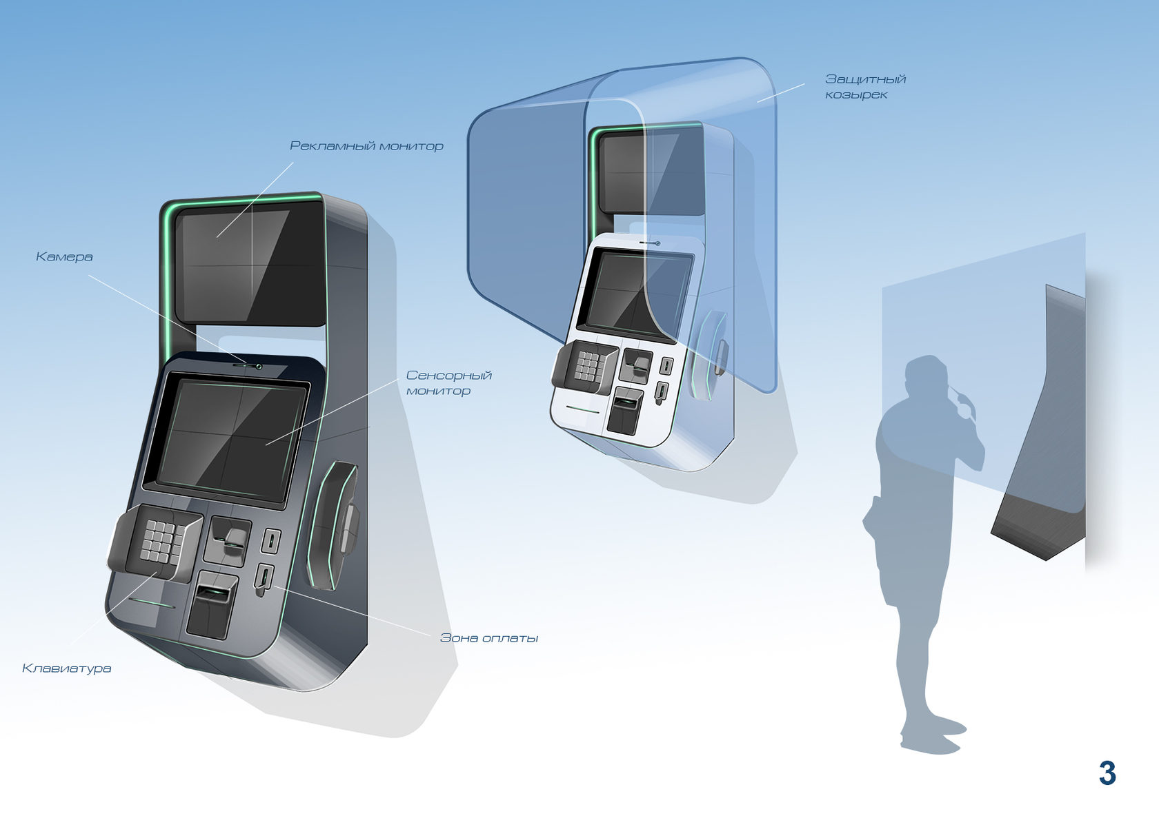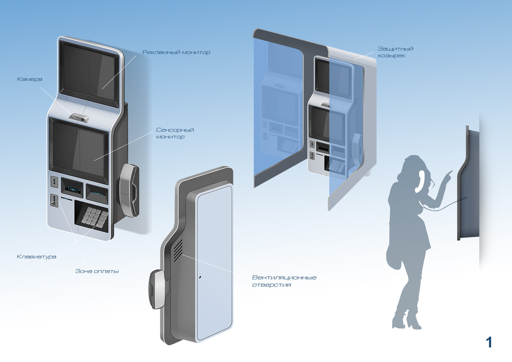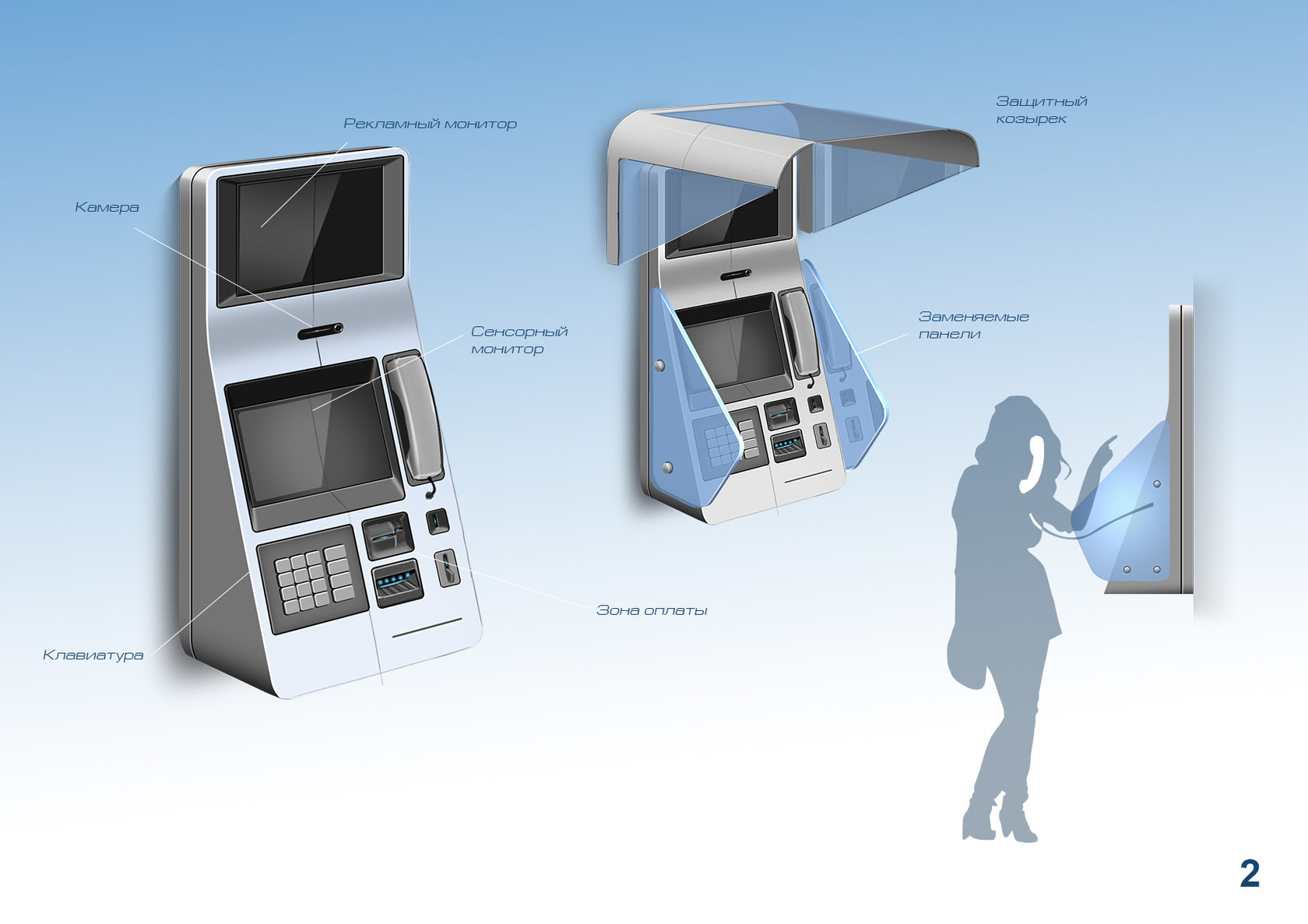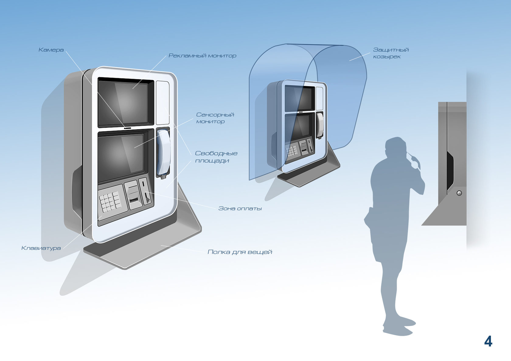 Конечно, современные таксофоны уже не чета старым аппаратам. Нам же заказали разработать внешний вид еще более «продвинутого» устройства — видеотаксофона.