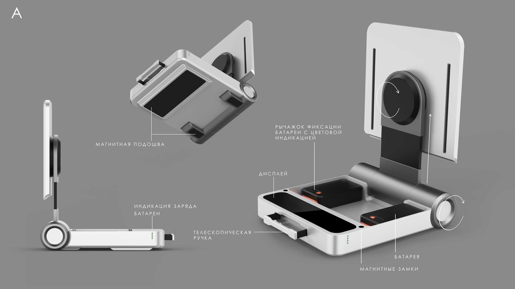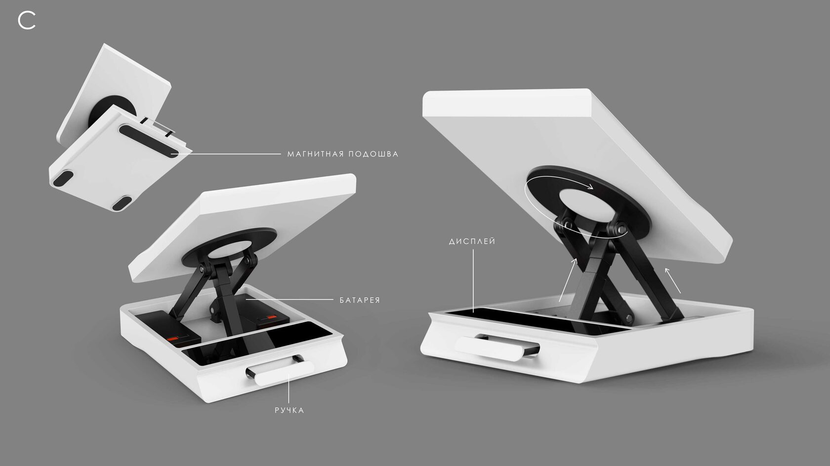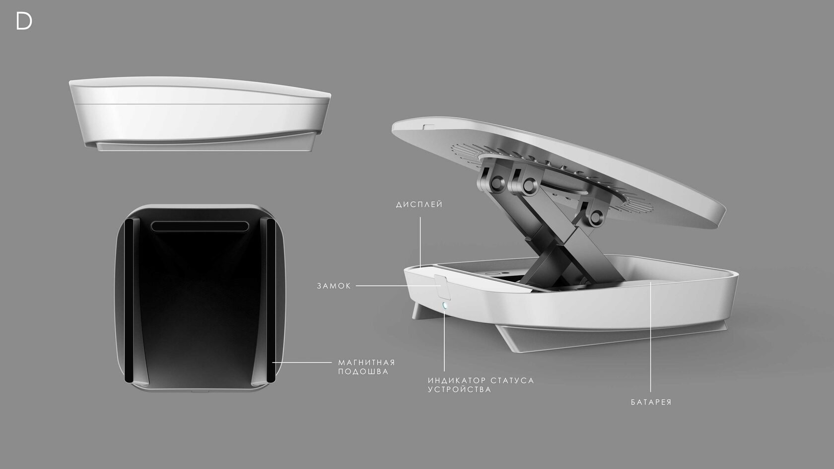 Мы разрабатываем концепт-дизайн сразу двух версий терминала спутниковой связи: ручной и автомобильной. Последняя будет с быстросъёмным креплением на крышу автомобиля и настройкой с помощью приводов (чтобы не выходить из машины).
