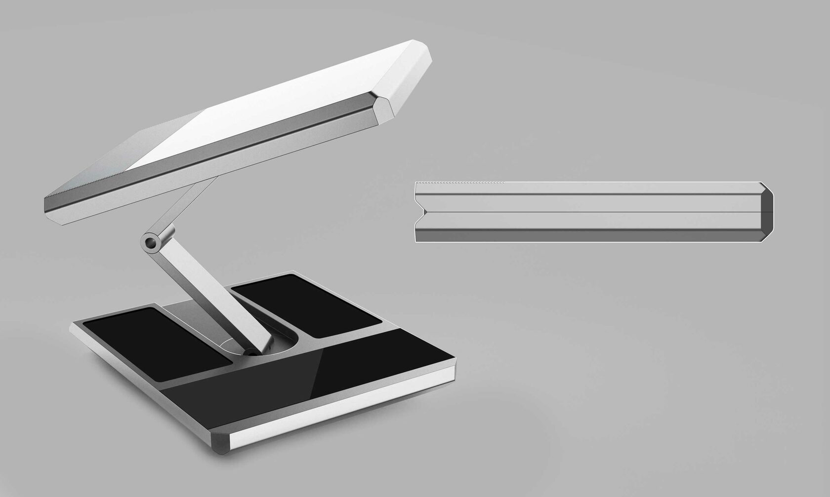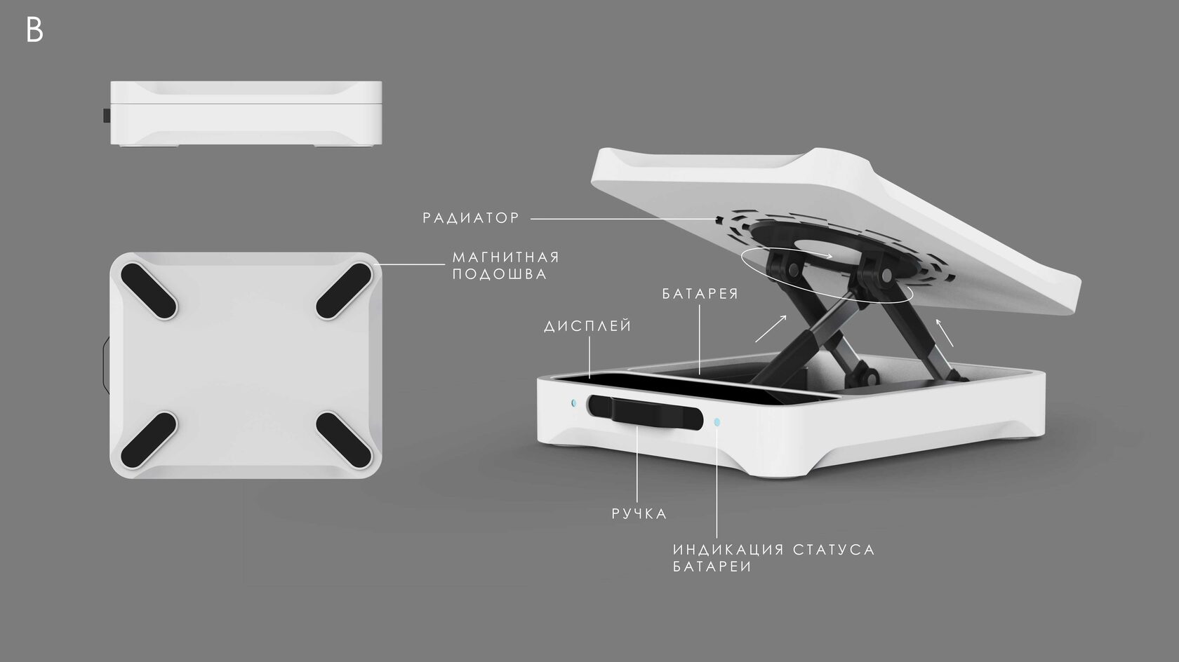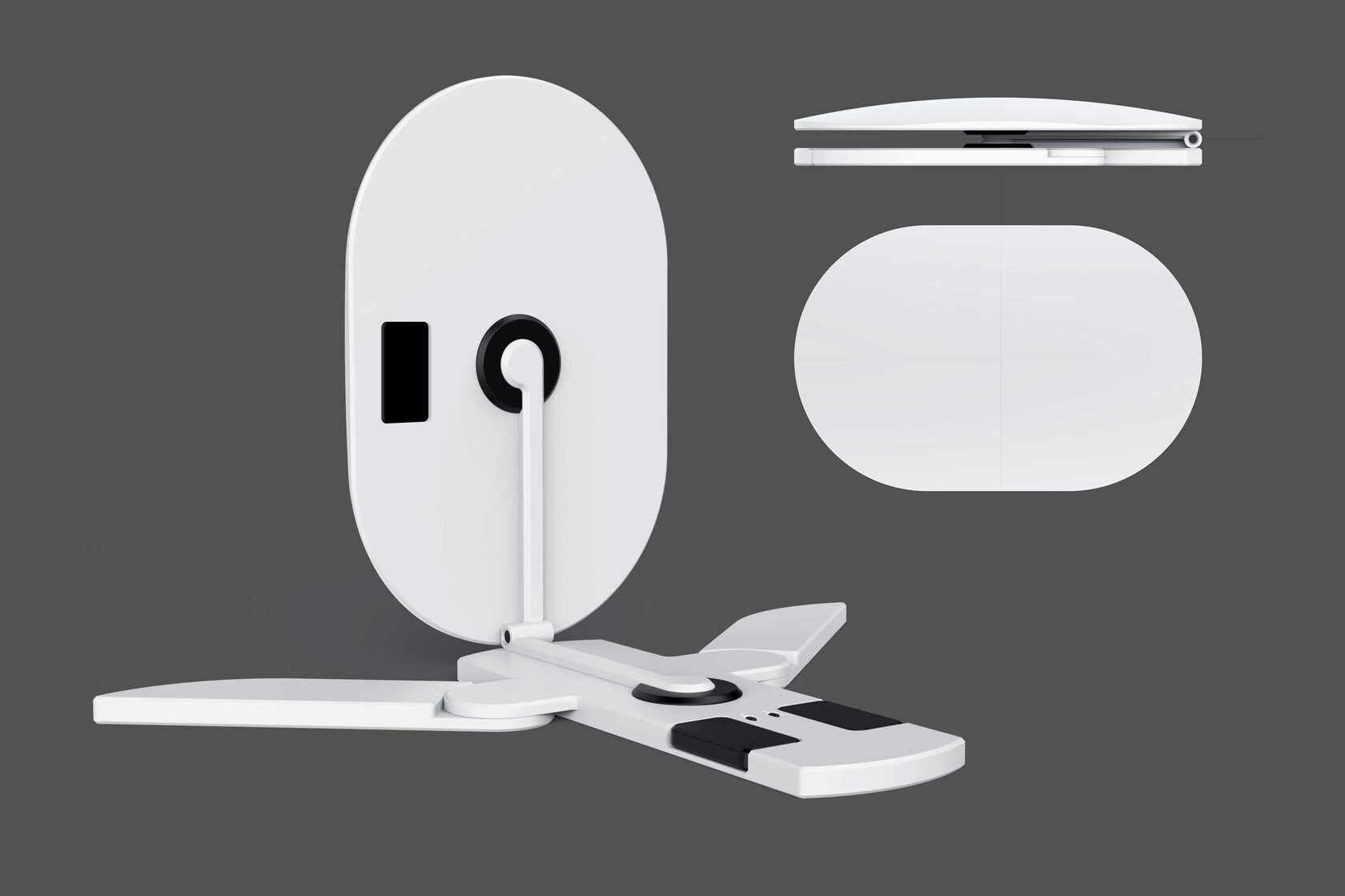 Мы разрабатываем концепт-дизайн сразу двух версий терминала спутниковой связи: ручной и автомобильной. Последняя будет с быстросъёмным креплением на крышу автомобиля и настройкой с помощью приводов (чтобы не выходить из машины).