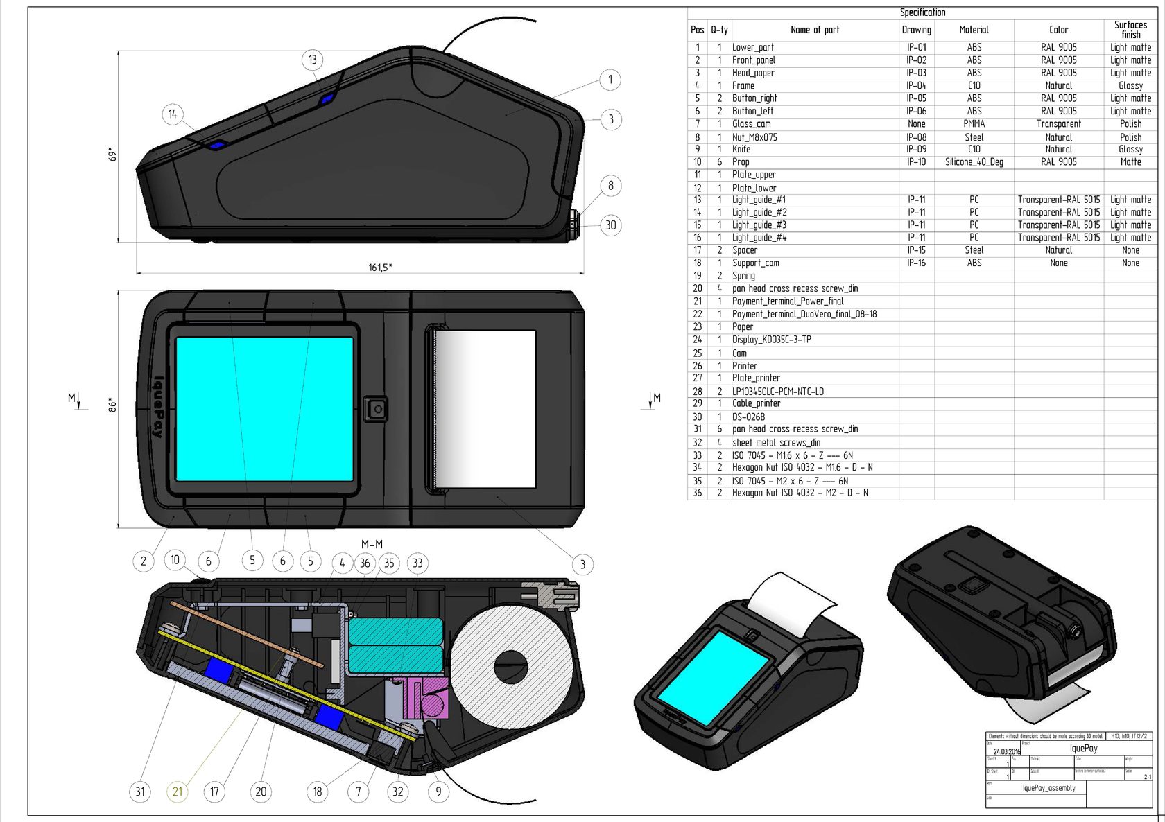 Не стоило забывать про функционал и эргономику. Сервисное обслуживание терминала сводилось к замене чековой ленты — в этот отсек нужно предусмотреть доступ и учесть, что менять ленту будут часто: крышка должна это выдержать.