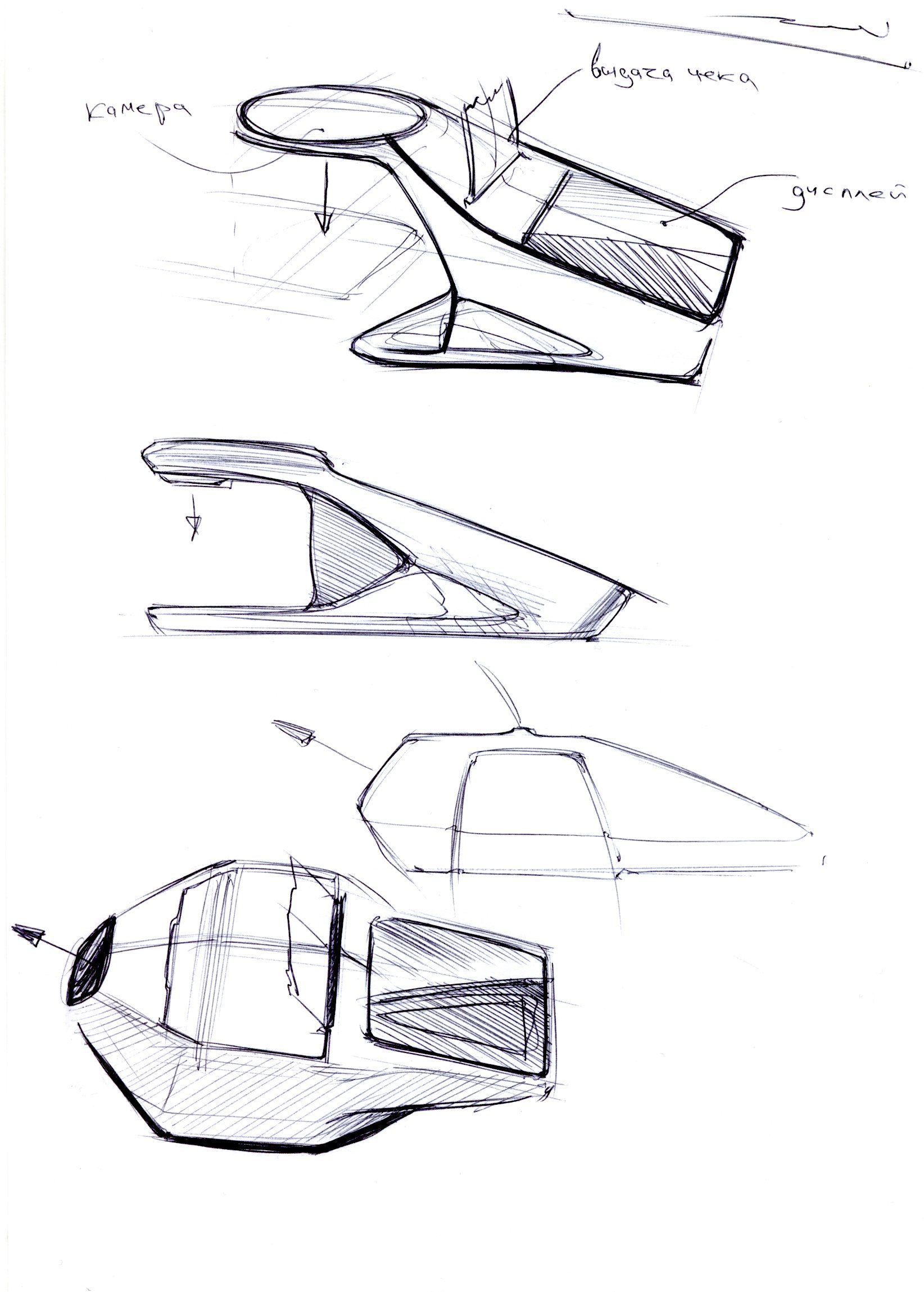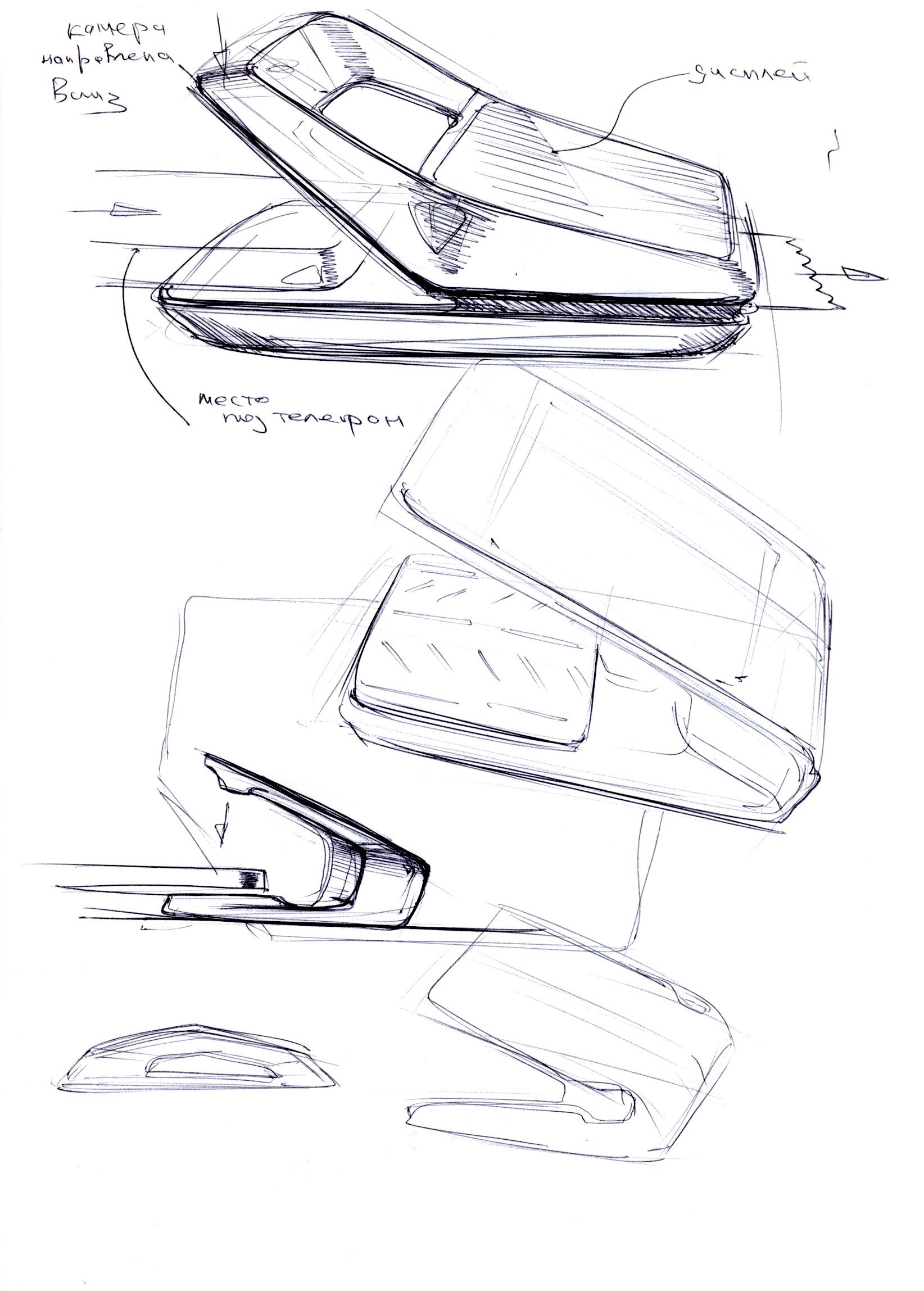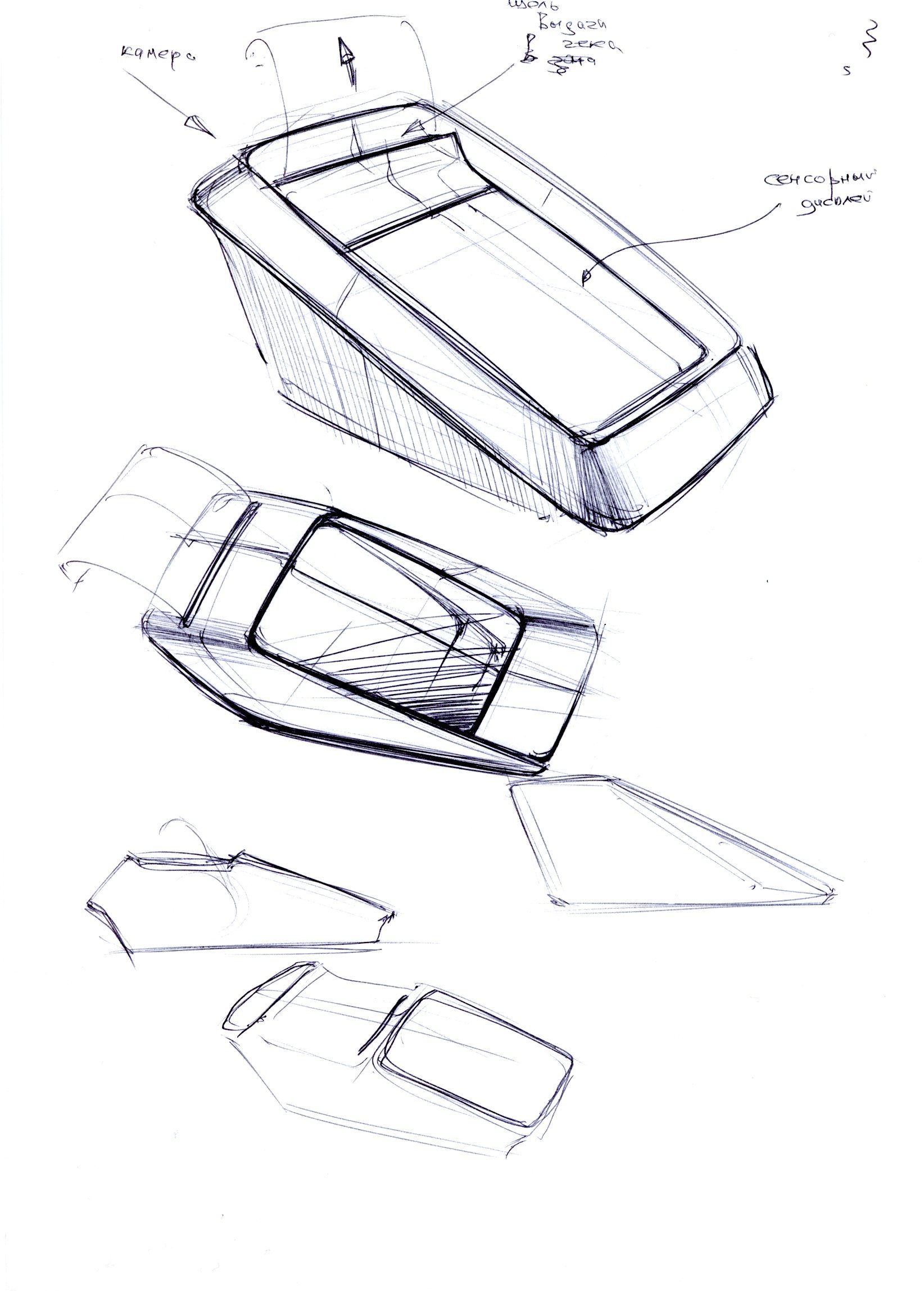 Нарисовали много эскизов. Ключевым элементом дизайна стал тачскрин — его пропорции определили размер всего корпуса.