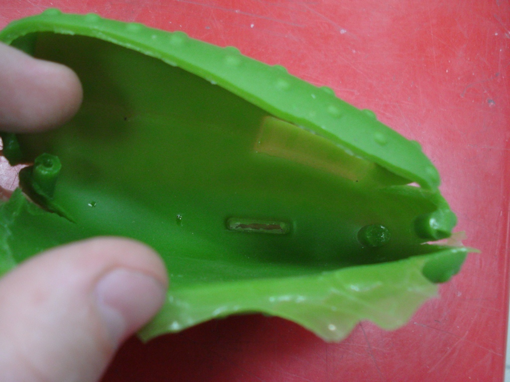 И залить силиконом пластик по технологиям, которые далеки от этого, не получилось: силикон проникал в пластиковый корпус и заливал всю электронику. Он не приводил её в негодность, нет, однако блокировал моторчик, и вибратор толком не вибрировал (и тем самым сводил на нет всю идею прибора).