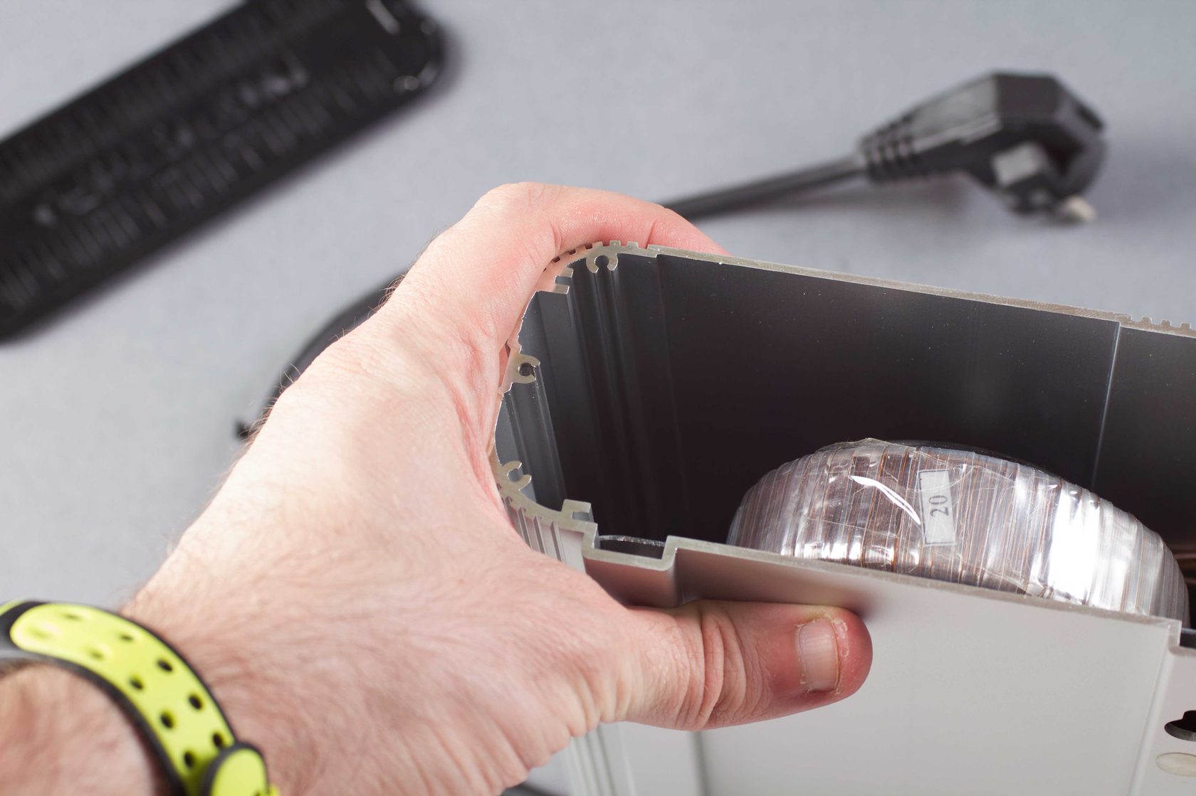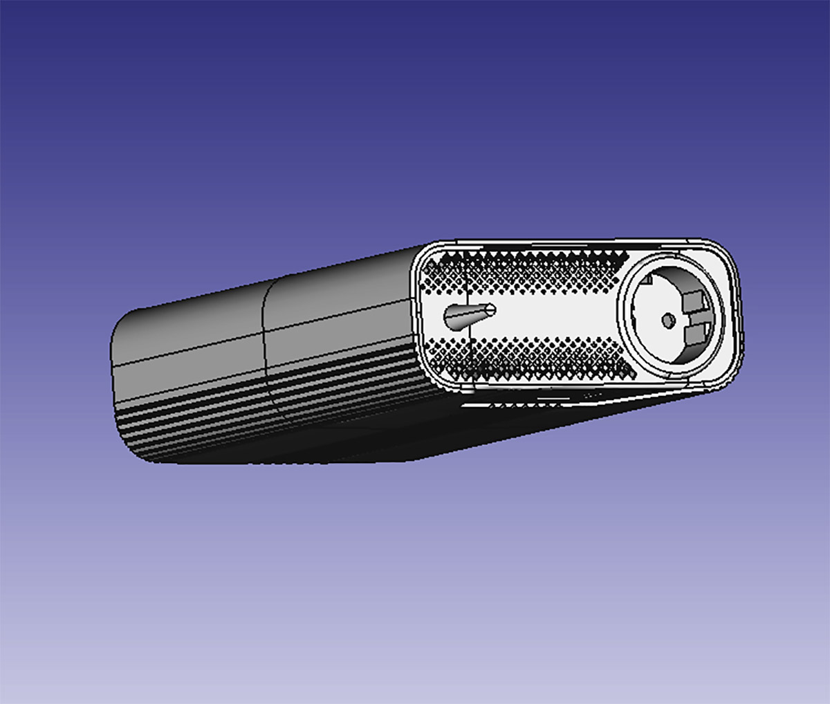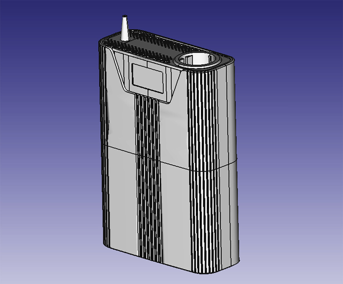 Корпус сначала вроде бы планировалось делать из пластика. Но, увидев эскизы, заказчик задумался над тем, чтобы заменить пластик на экструзионный алюминиевый профиль. Тем более что опыт работы с таким профилем у него уже имелся. Самый первый предложенный Формлабом концепт под такую технологию производства походил идеально.