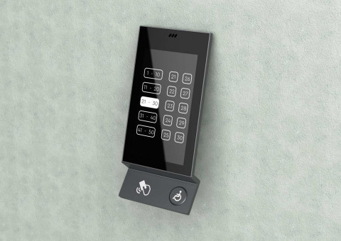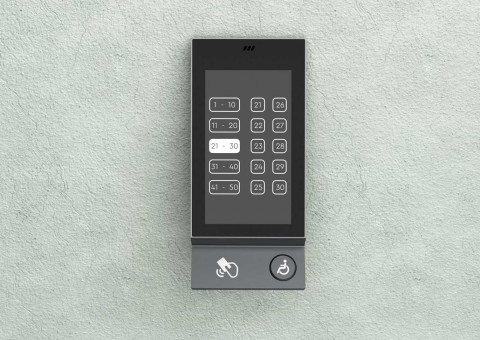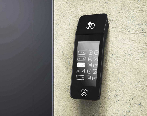 Терминал «умный»: пользователю достаточно нажать кнопку этажа, на который он хочет подняться, а на дисплее вызывной панели появляется номер свободного лифта.