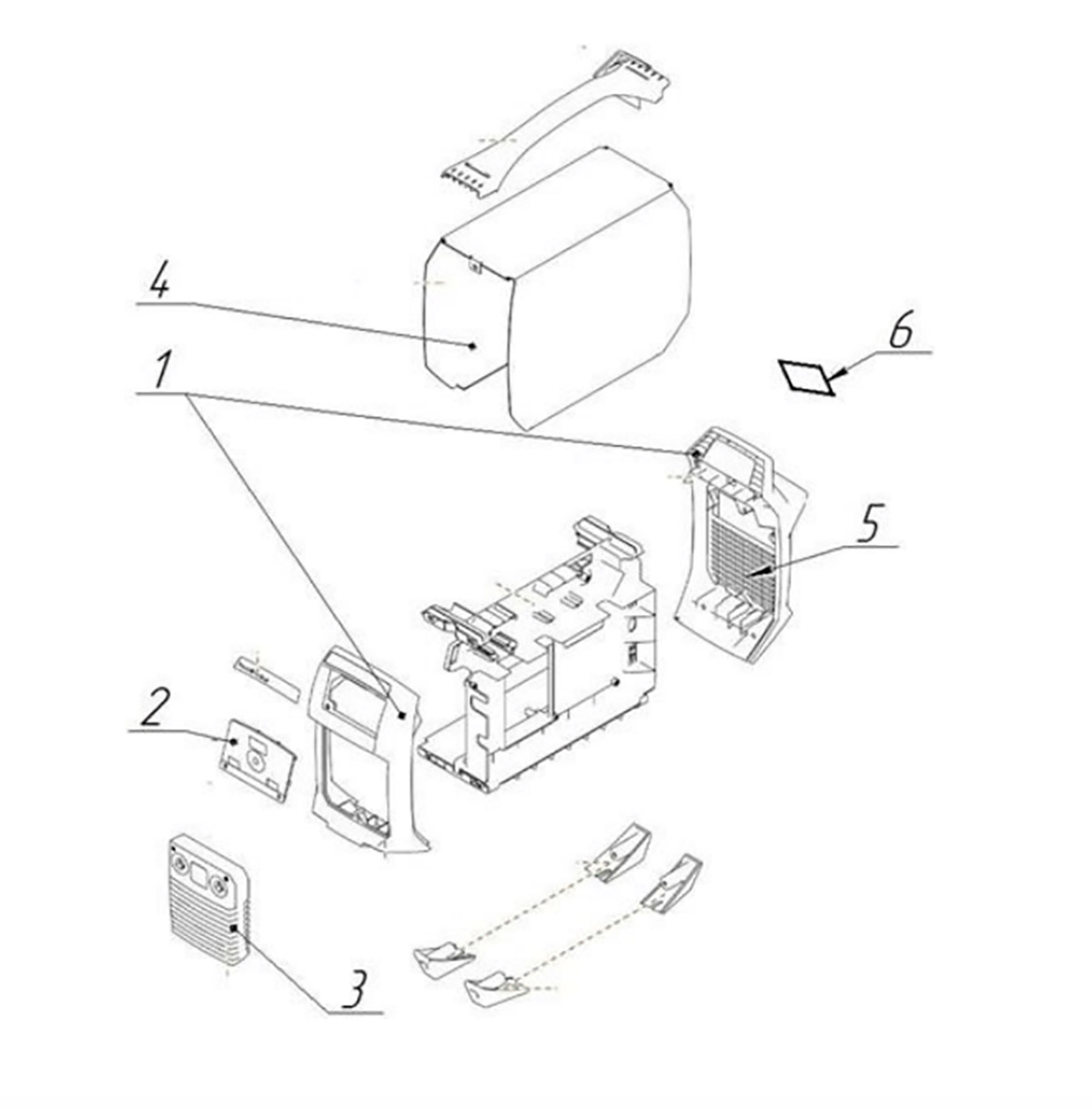 Состав корпуса аппарата: передняя и задняя каркасные пластиковые панели; съёмная панель управления в нише передней части; панель разъемов с жалюзи; стальные боковые стенки и крышка толщиной ~1,0 мм; съёмная часть задней панели вентилятора съёмная часть задней панели, дно для внутреннего наполнения — силовых полупроводниковых элементов, трансформатора, платы системы управления и других.
