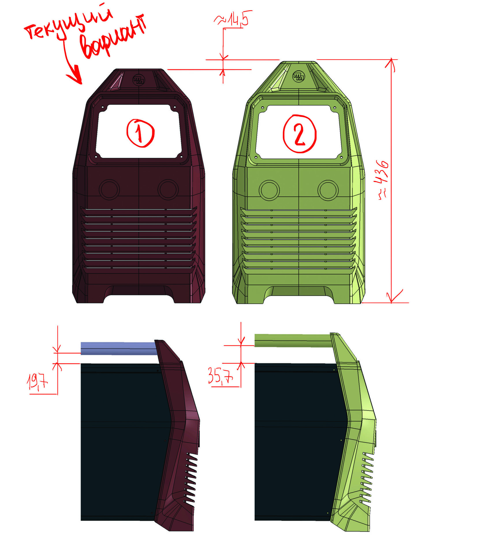 Всё мимо: клиента ни один из вариантов особо не впечатлил: и слишком много пластика, и прямо не сварочный аппарат, а какой-то системный блок.