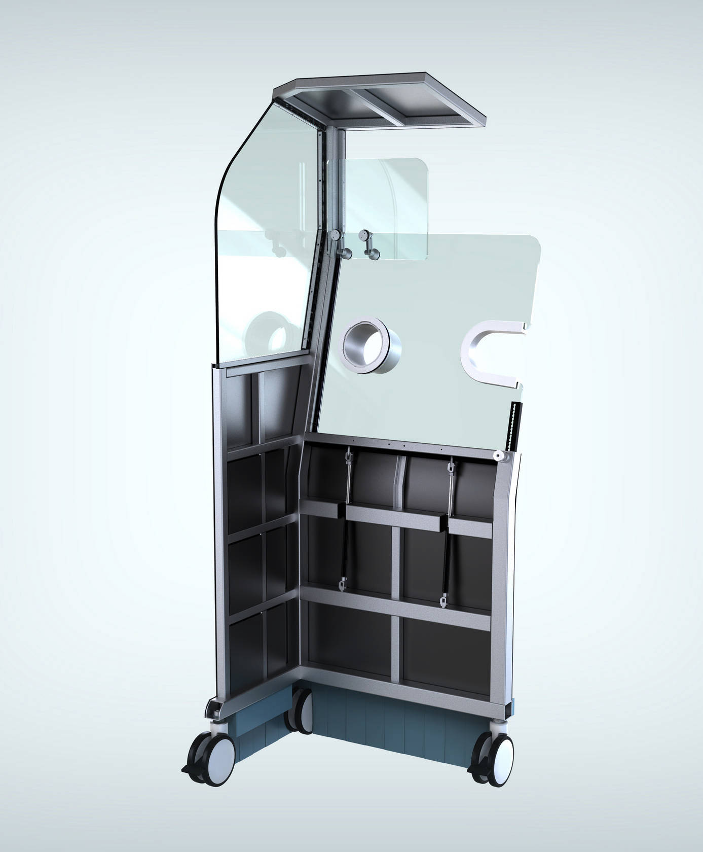Обеспечение защиты медработника, удобство использования и, конечно, современный внешний вид стали основными задачами проекта. Хотя нам, как всегда, поставили очень чёткую экономическую планку: оборудование покупается за бюджетные средства, а значит, низкая цена часто является решающим фактором для покупки оборудования.