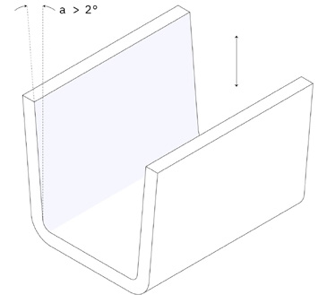 - Для изделий с текстурированной поверхностью конусность дополнительно увеличивается на 1-2°; если вы используете каталог «шагреней», смотрите рекомендации в буклете каталога — иногда угол должен быть существенно больше.