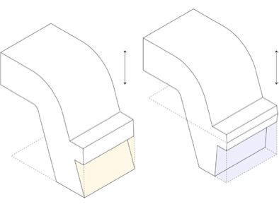 Другим способом работы с поднутрениями является удаление материала из-под или над проблемной областью. Таким образом поднутрение удаляется и всё изделие изготавливается формой напрямую.