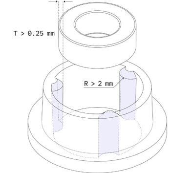 - Минимальное перекрытие между ребром и вкладышем должно составлять 0,25 мм
