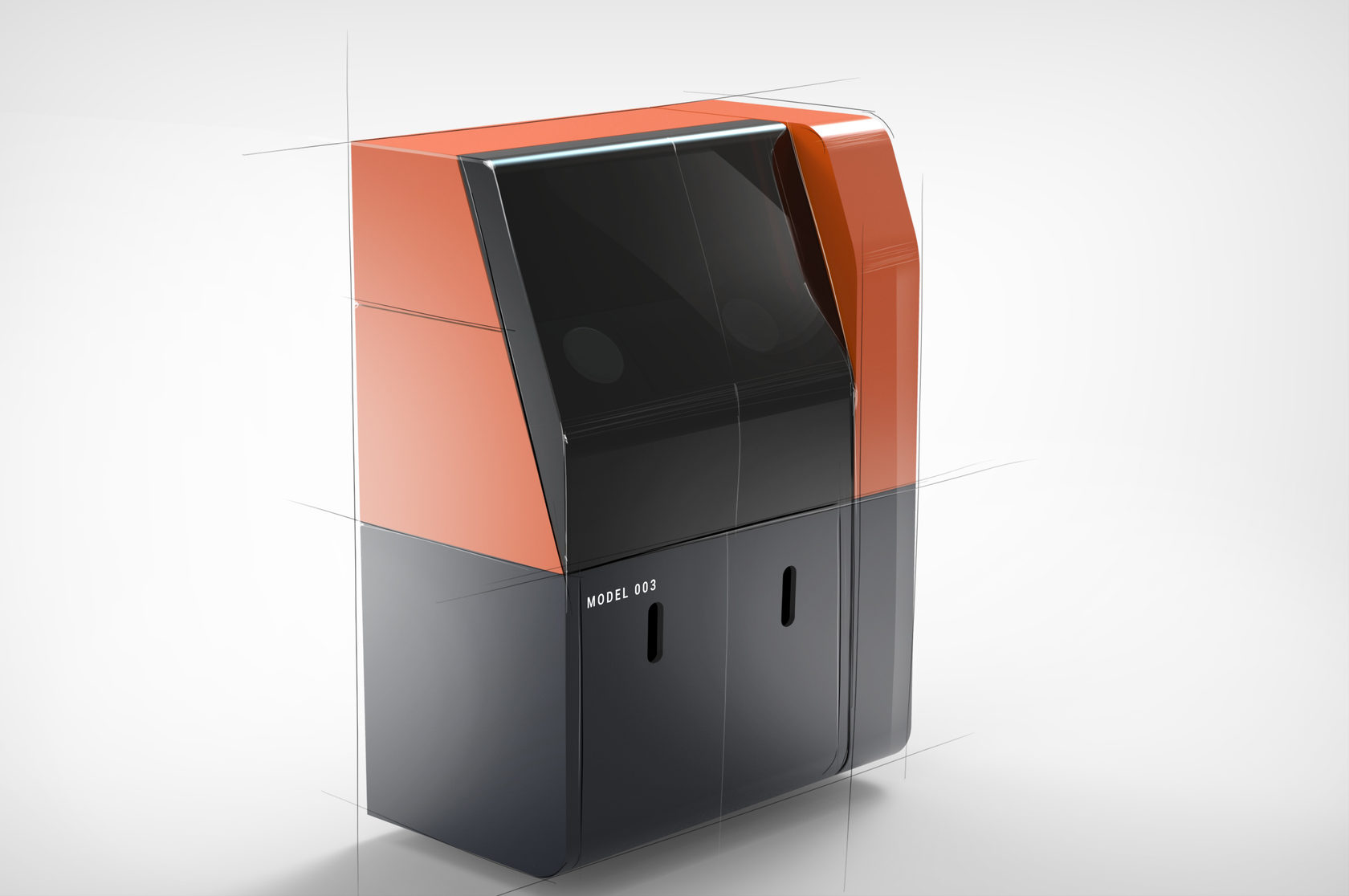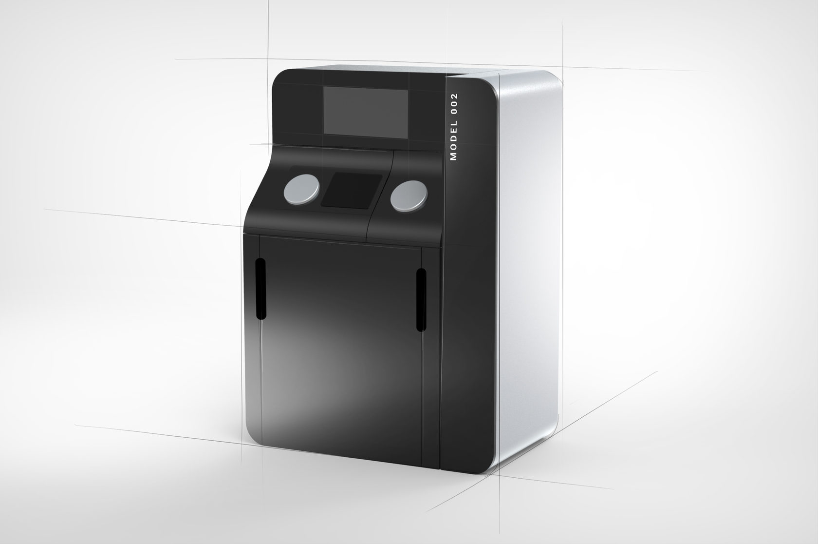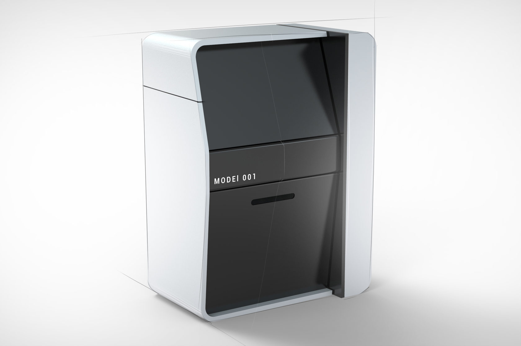 Точно так же, как и Additive Solutions D250, новый принтер работает по технологии выборочного лазерного плавления (SLM). Он состоит из трёх модулей: первый (верхний) — лазер и сканатор, второй блок — электрика и пневматика, третий — основной: непосредственно печатающее устройство. И у каждого этого блока должен быть, по сути, отдельный корпус, а собранные все вместе они должны выглядеть гармонично.