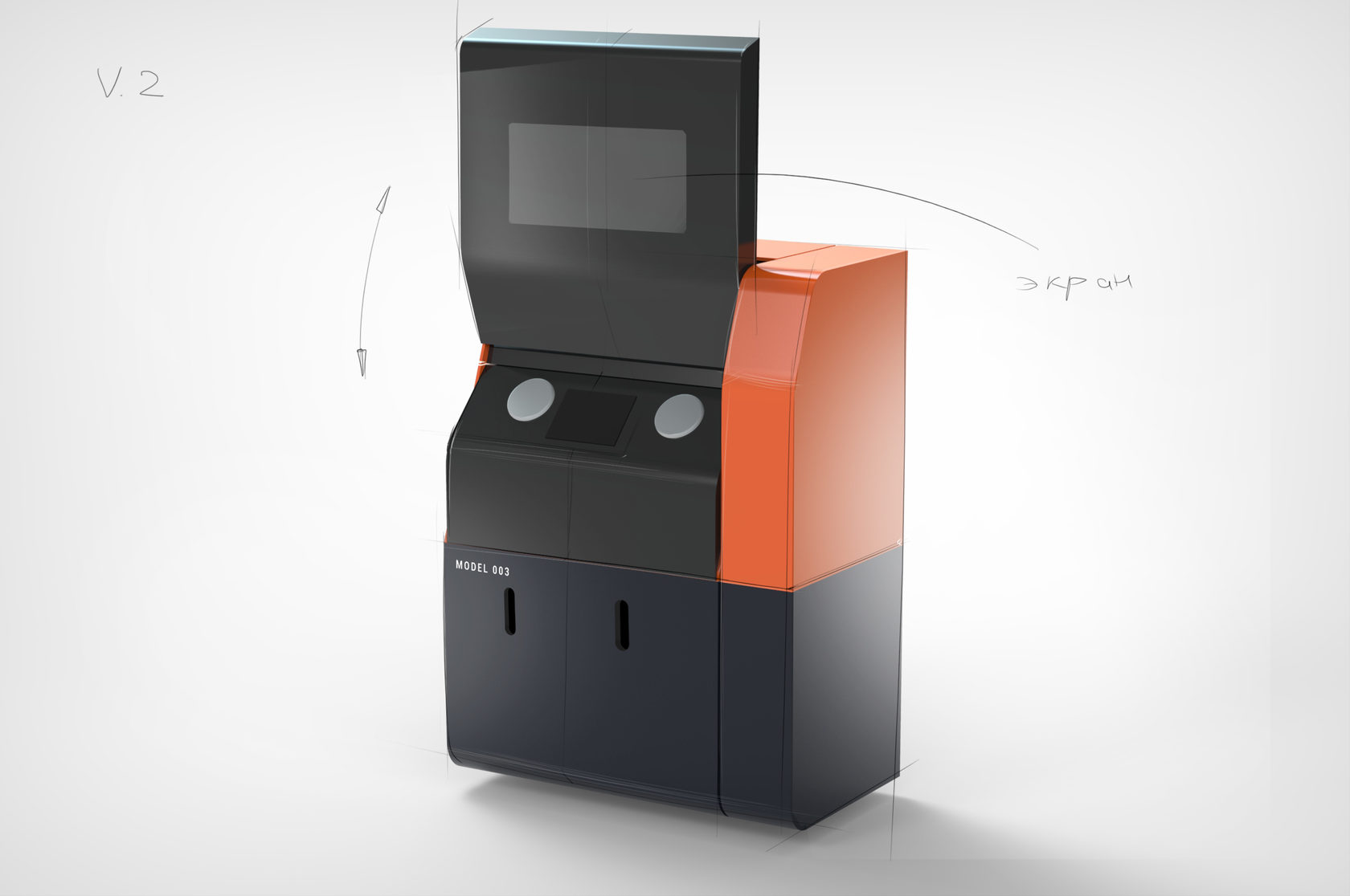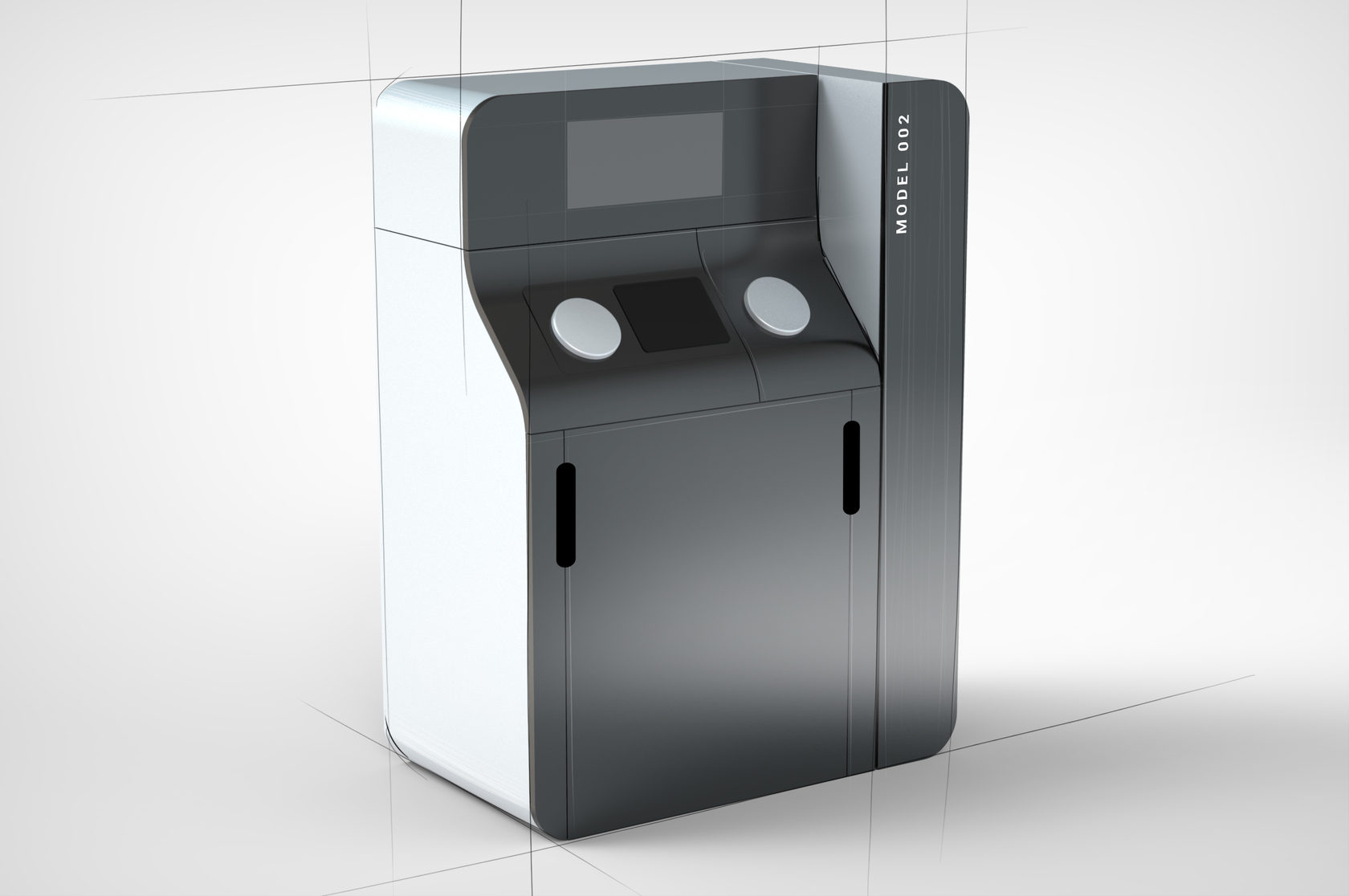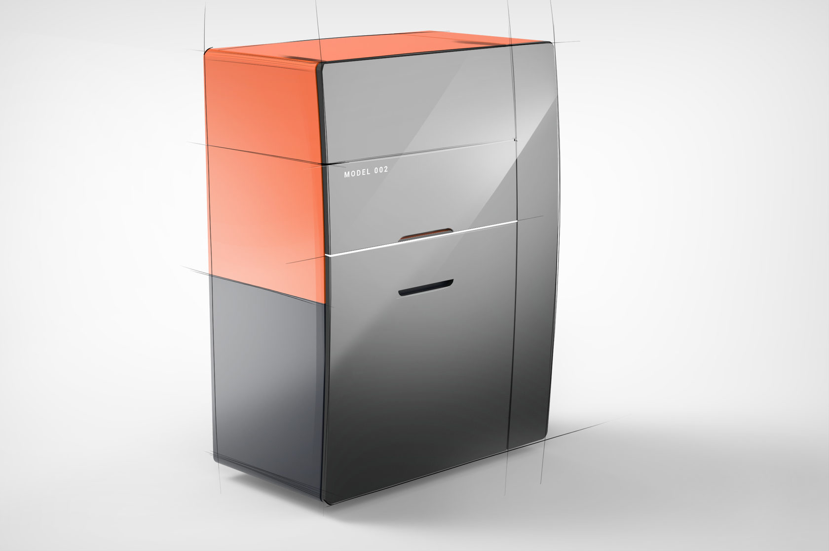 Точно так же, как и Additive Solutions D250, новый принтер работает по технологии выборочного лазерного плавления (SLM). Он состоит из трёх модулей: первый (верхний) — лазер и сканатор, второй блок — электрика и пневматика, третий — основной: непосредственно печатающее устройство. И у каждого этого блока должен быть, по сути, отдельный корпус, а собранные все вместе они должны выглядеть гармонично.