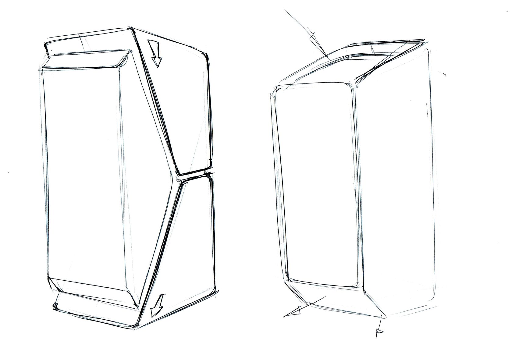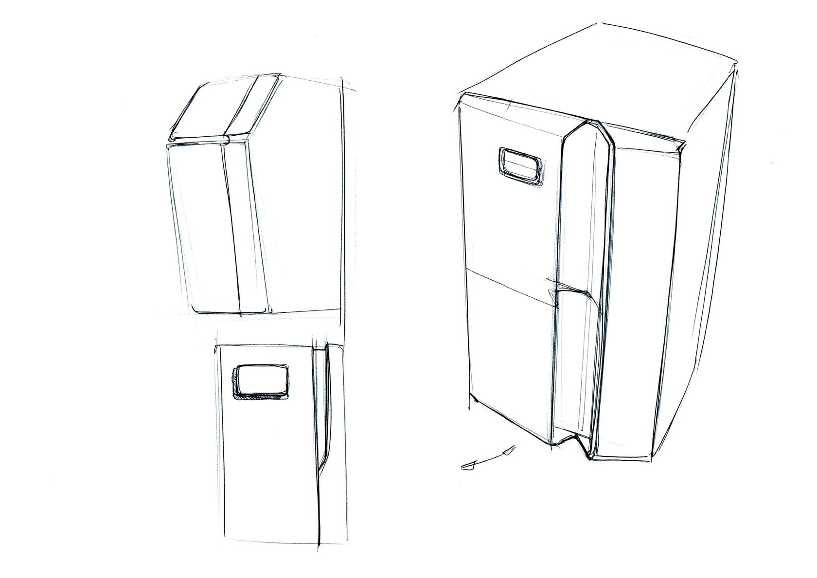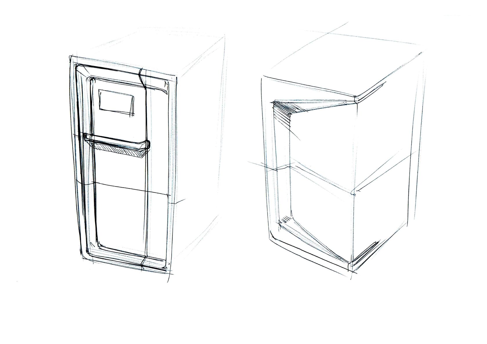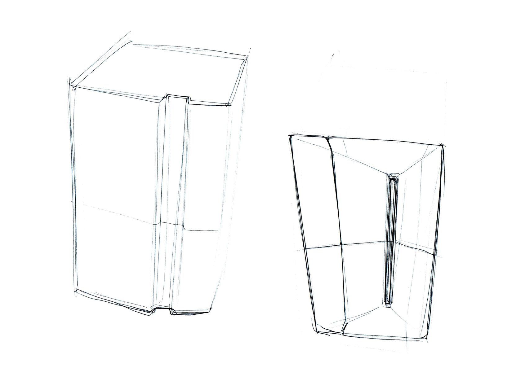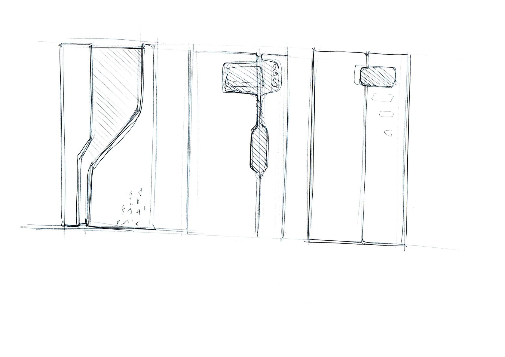 Черновых эскизов нарисовали много. Но и отсев был жёстким. Одни идеи не смогли его пройти из-за того, что дизайн нельзя было без проблем распространить на семь типоразмеров линейки; другие — из-за сложности (а значит, и дороговизны) производства. Мы же помним, что стоимость сильно увеличивать нельзя.