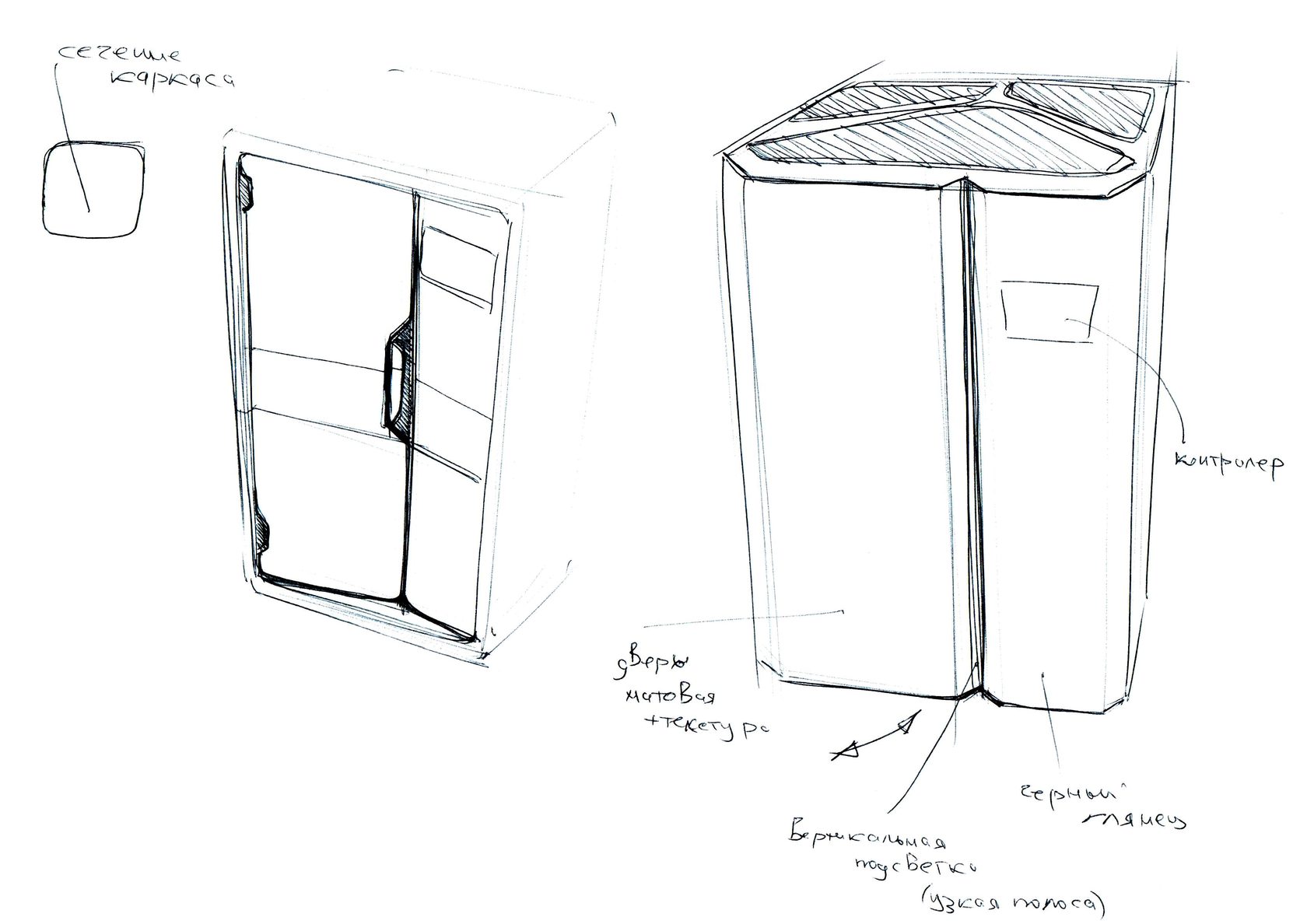 Вдобавок кондиционер входит в линейку продуктов, в рамках которой предусмотрен выпуск семи типоразмеров, и каждый из этих «шкафов» должен хорошо выглядеть. Например, в ещё не разработанной модели более мощного кондиционера будет не одна дверь, а несколько.