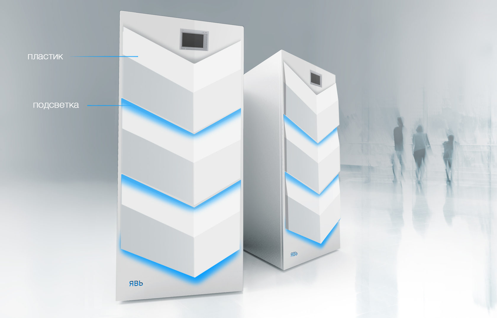 Рендеры. Подсветка есть как горизонтальная, так и вертикальная (на стадии моделирования предусмотрели места для её крепления), так что заказчик сможет выбрать, какую будет проще и дешевле реализовать.