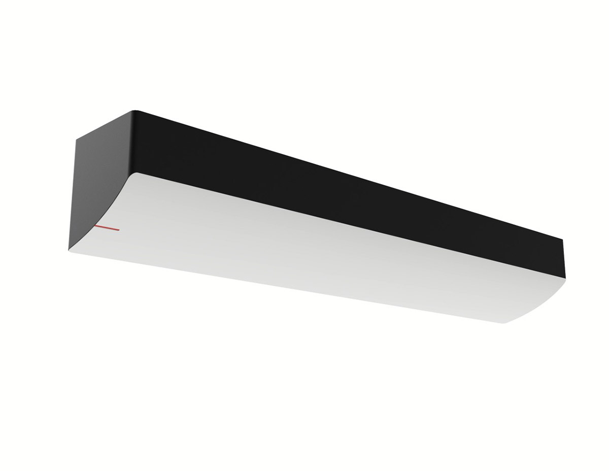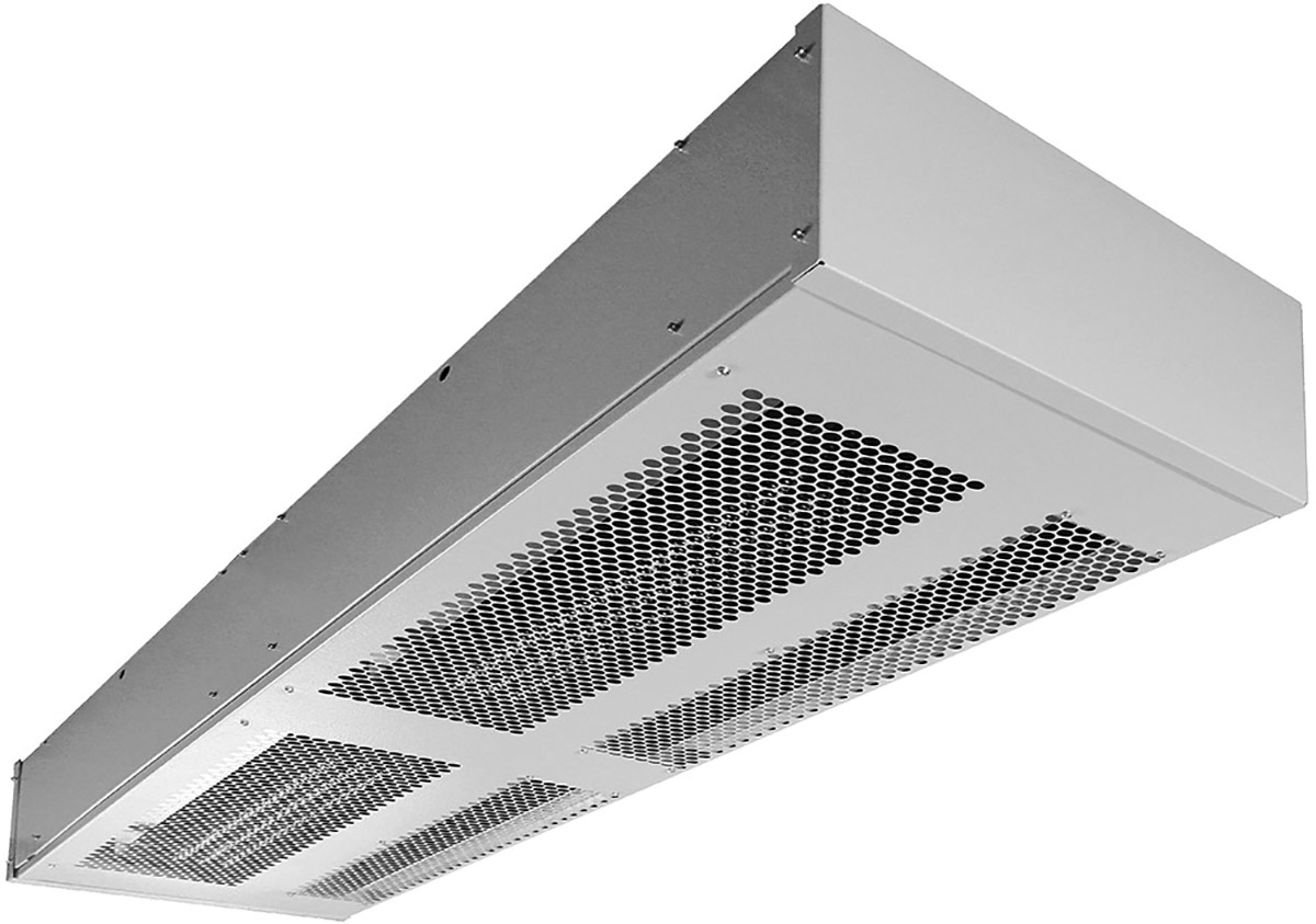 Примерно так выглядит обычная тепловая завеса. Эта размещается над воротами