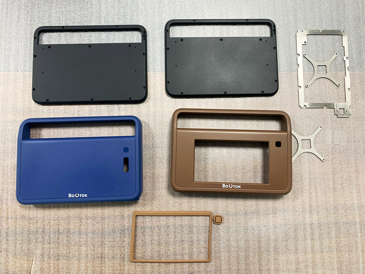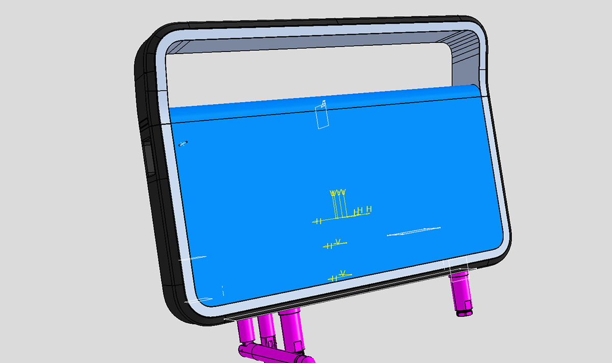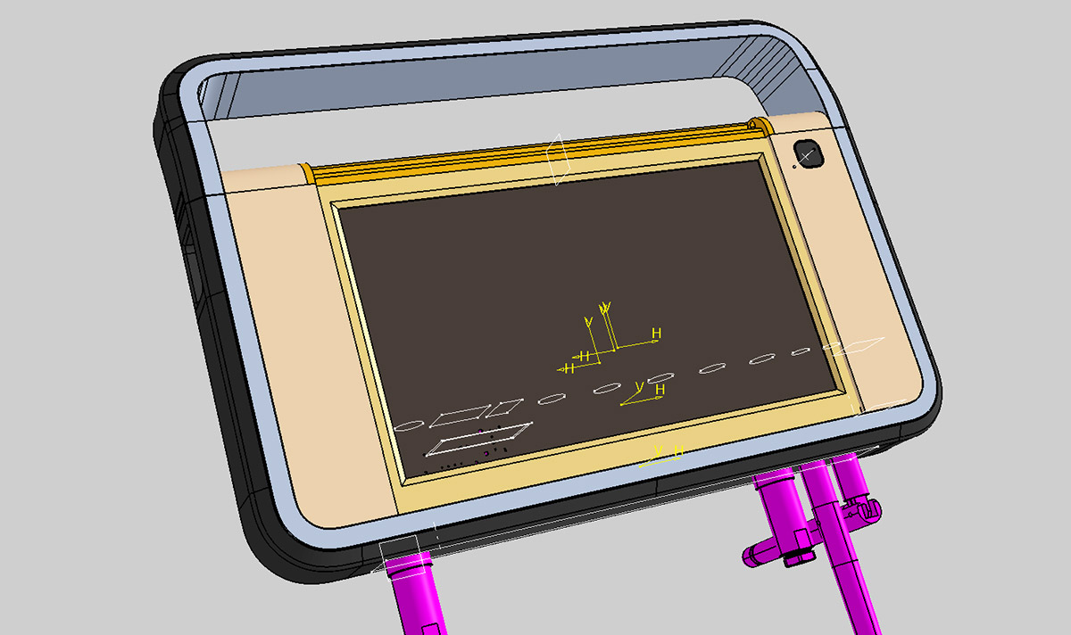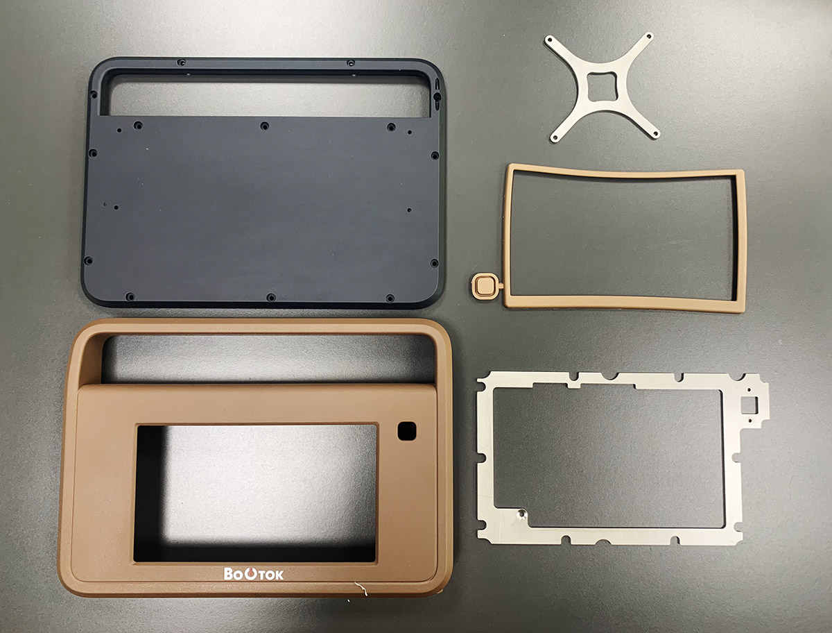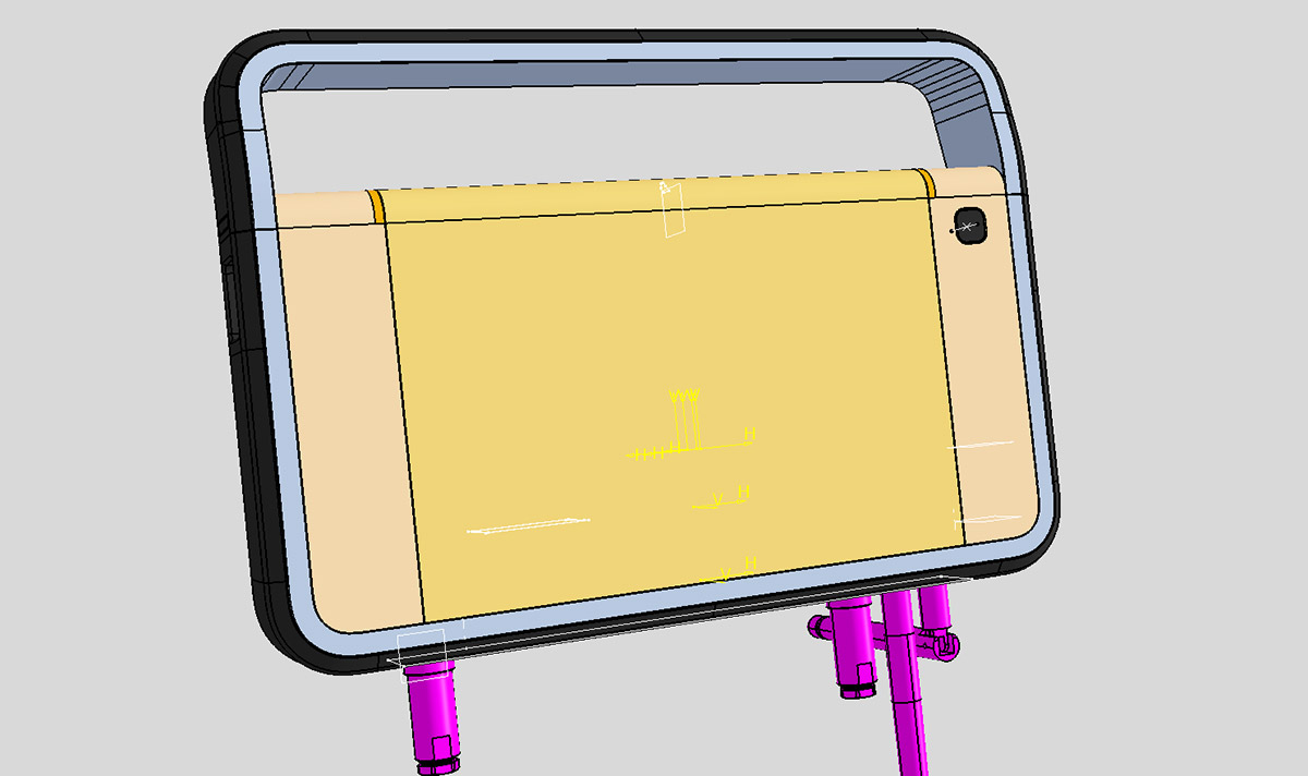 Кроме того, ТЗ снова меняется: заказчик отказывается от крышки, закрывающей дисплей. Вместо неё будет плёнка. Также не будет ни алюминиевой рамки, ни обрезинки по контуру. Обрезинивание заменят пластиком с разной текстурой поверхности. Словом, конструкцию нужно максимально упростить для удешевления производства.