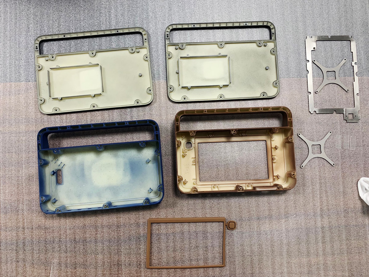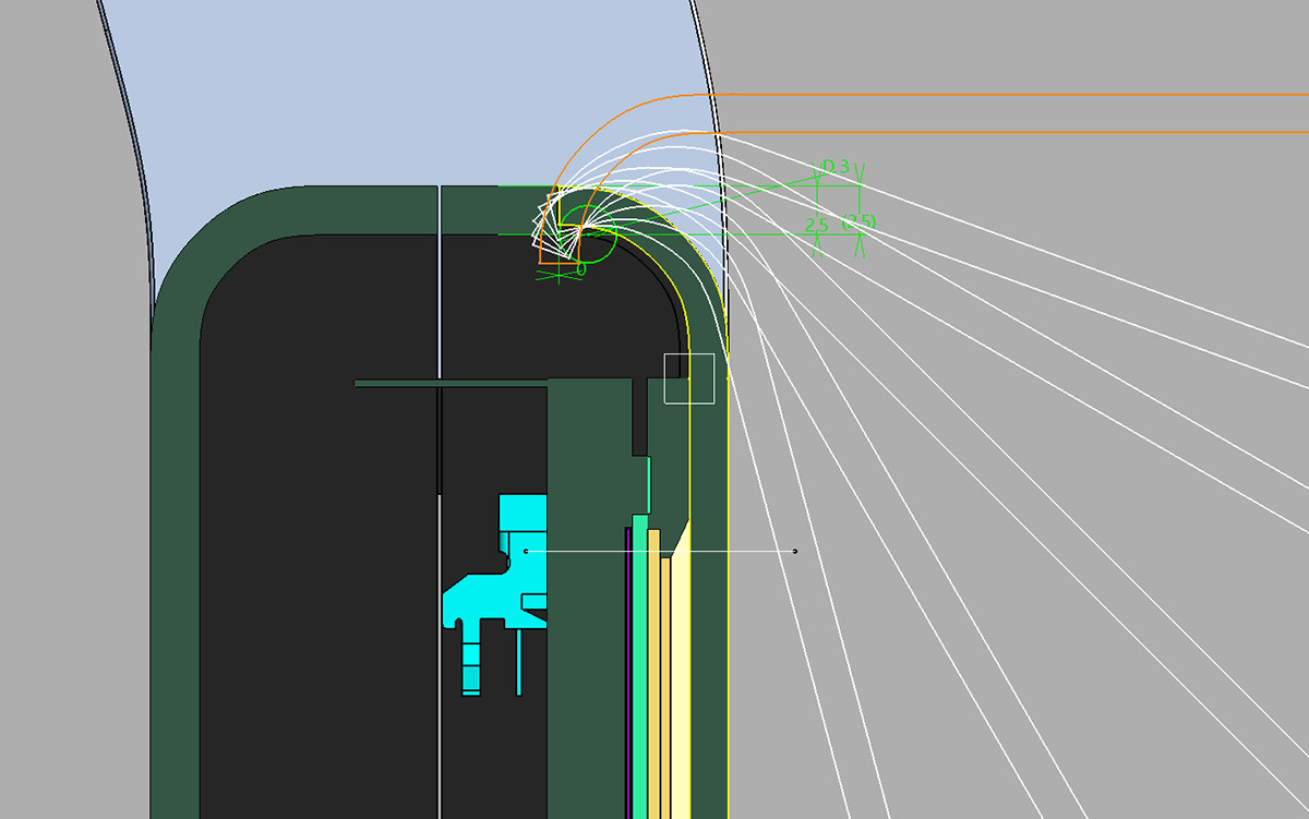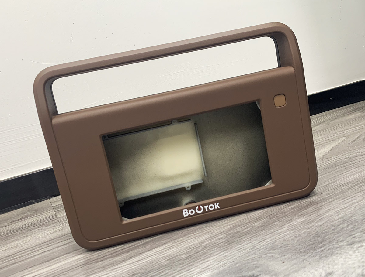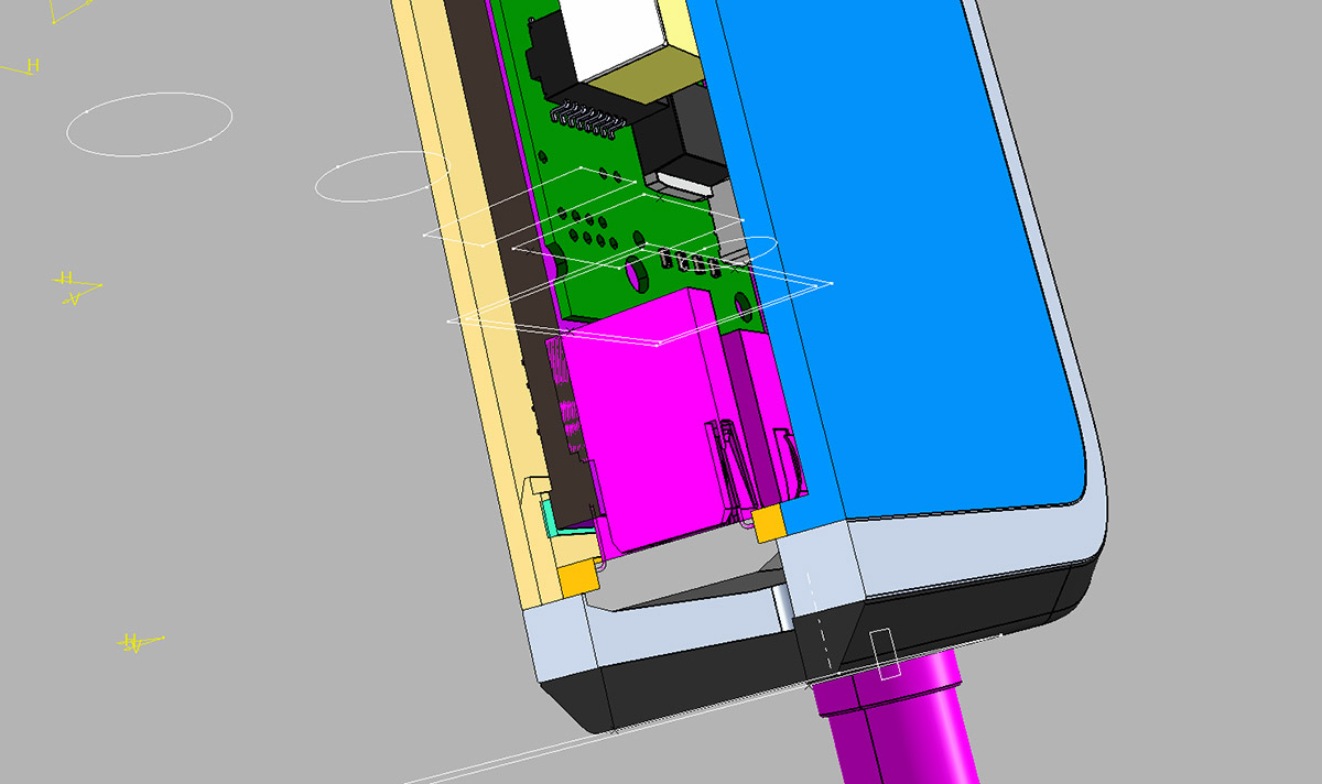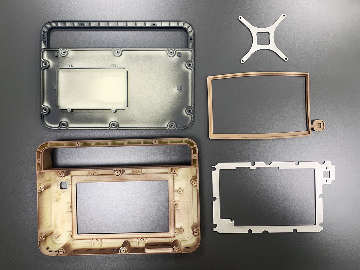 Кроме того, ТЗ снова меняется: заказчик отказывается от крышки, закрывающей дисплей. Вместо неё будет плёнка. Также не будет ни алюминиевой рамки, ни обрезинки по контуру. Обрезинивание заменят пластиком с разной текстурой поверхности. Словом, конструкцию нужно максимально упростить для удешевления производства.