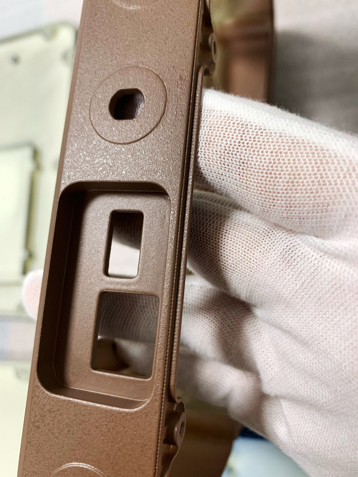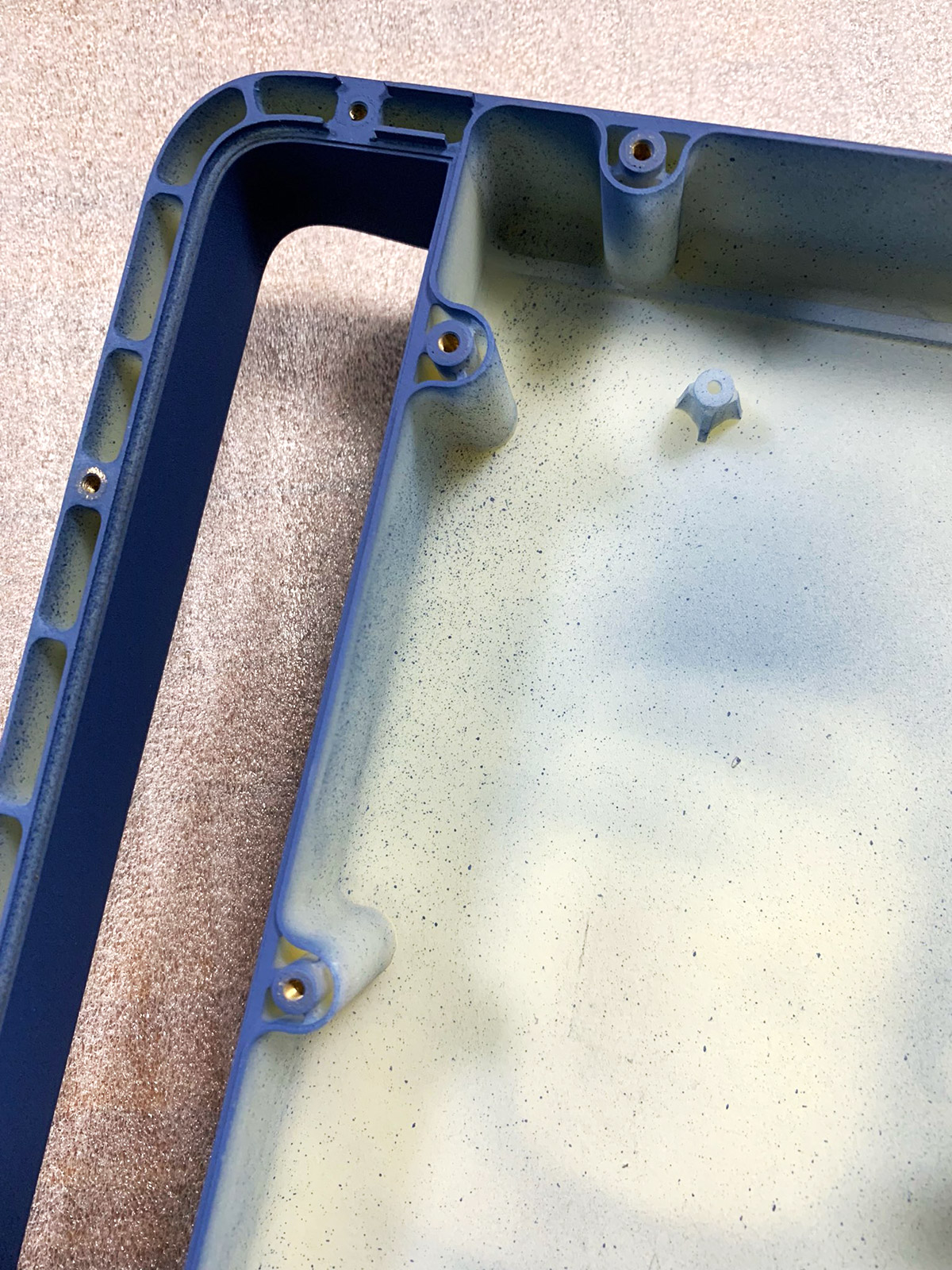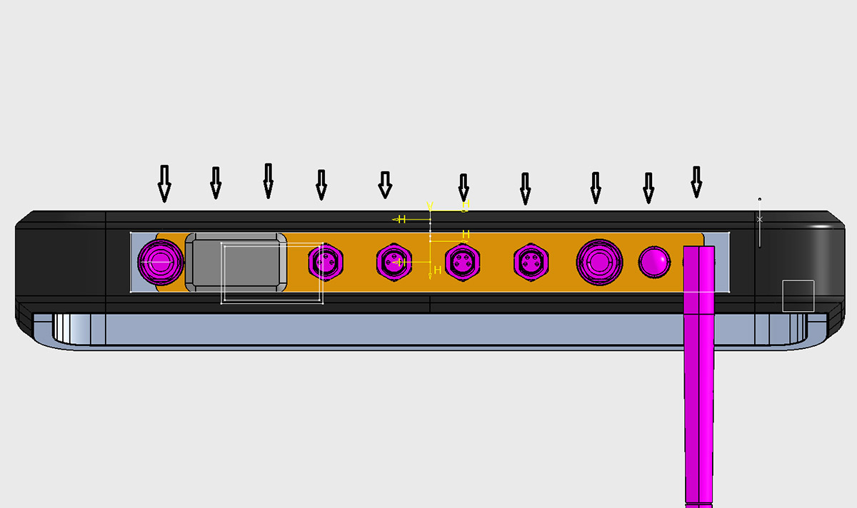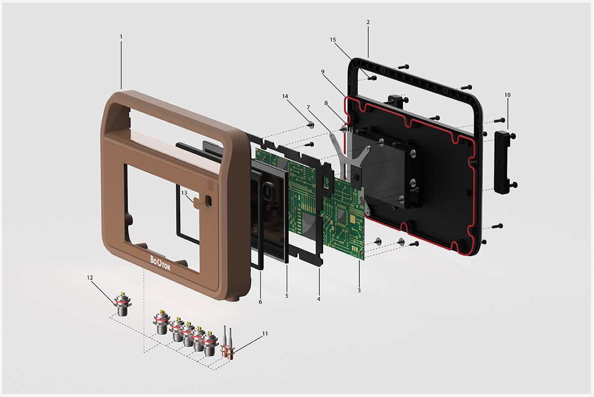 Кроме того, ТЗ снова меняется: заказчик отказывается от крышки, закрывающей дисплей. Вместо неё будет плёнка. Также не будет ни алюминиевой рамки, ни обрезинки по контуру. Обрезинивание заменят пластиком с разной текстурой поверхности. Словом, конструкцию нужно максимально упростить для удешевления производства.