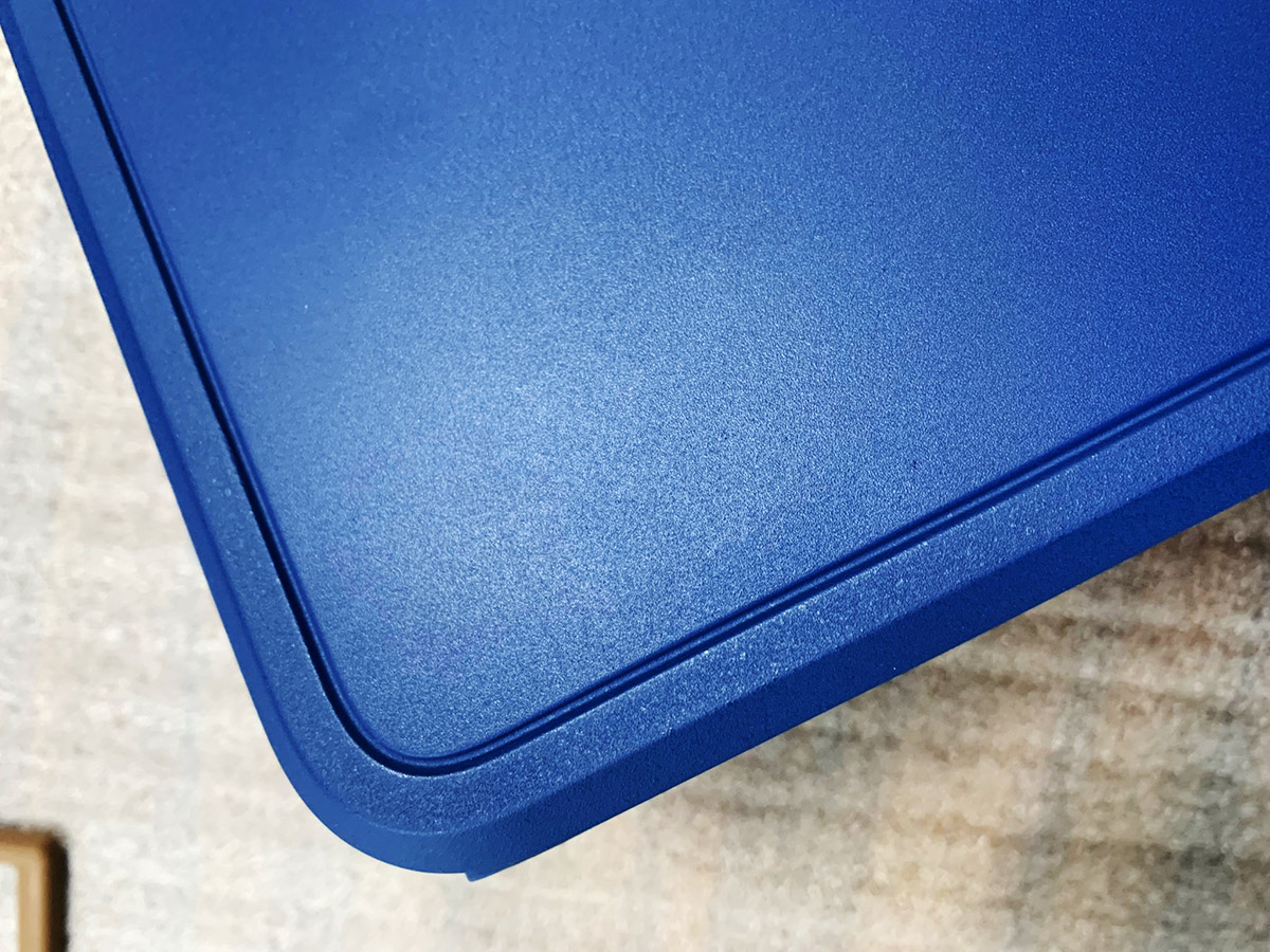 Поверхность корпуса — матовая, немаркая, один из оттенков синего цвета под запретом (потому что он напоминает о конкурентах). Ну, собственно, и всё.