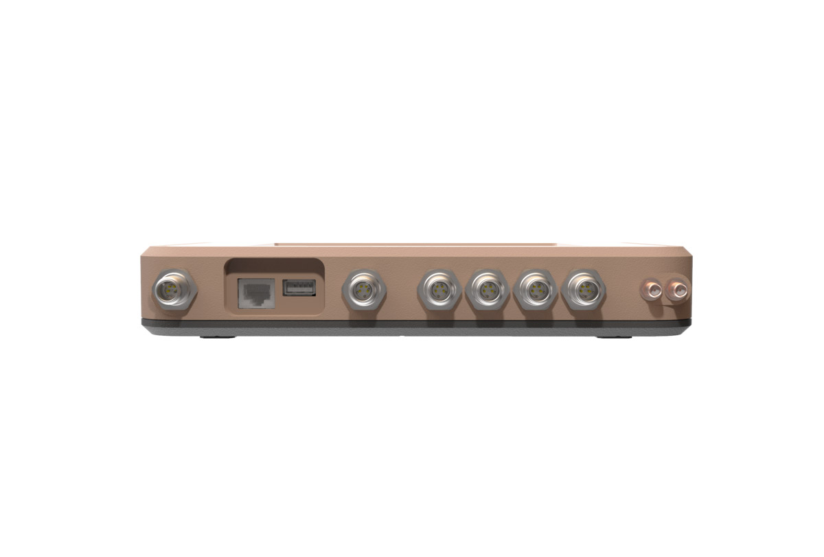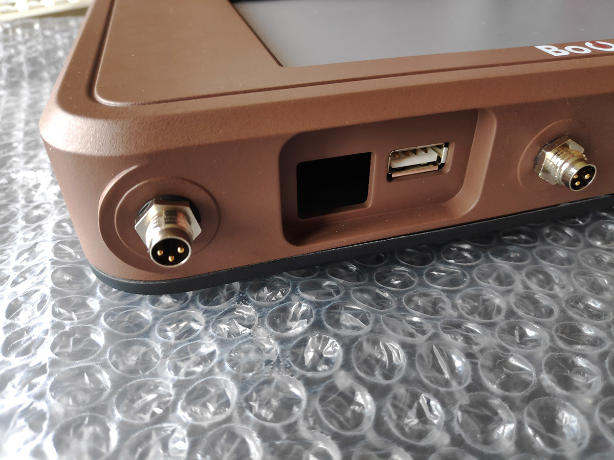 Прибор состоит из корпуса, платы, дисплея (в базовой версии; в защищённой вместо него будет просто пластик) и аккумулятора. Внешне он тоже прост: на лицевой стороне — дисплей (если есть в модификации) и кнопка включения/выключения; справа — USB-выход с заглушкой и разъём Ethernet (тоже с заглушкой); снизу — питание от сети два аналоговых и четыре дискретных выхода; сзади — выдвижной упор для установки на стол, крепление на стену через DIN-рейку и крышка аккумуляторного отсека.