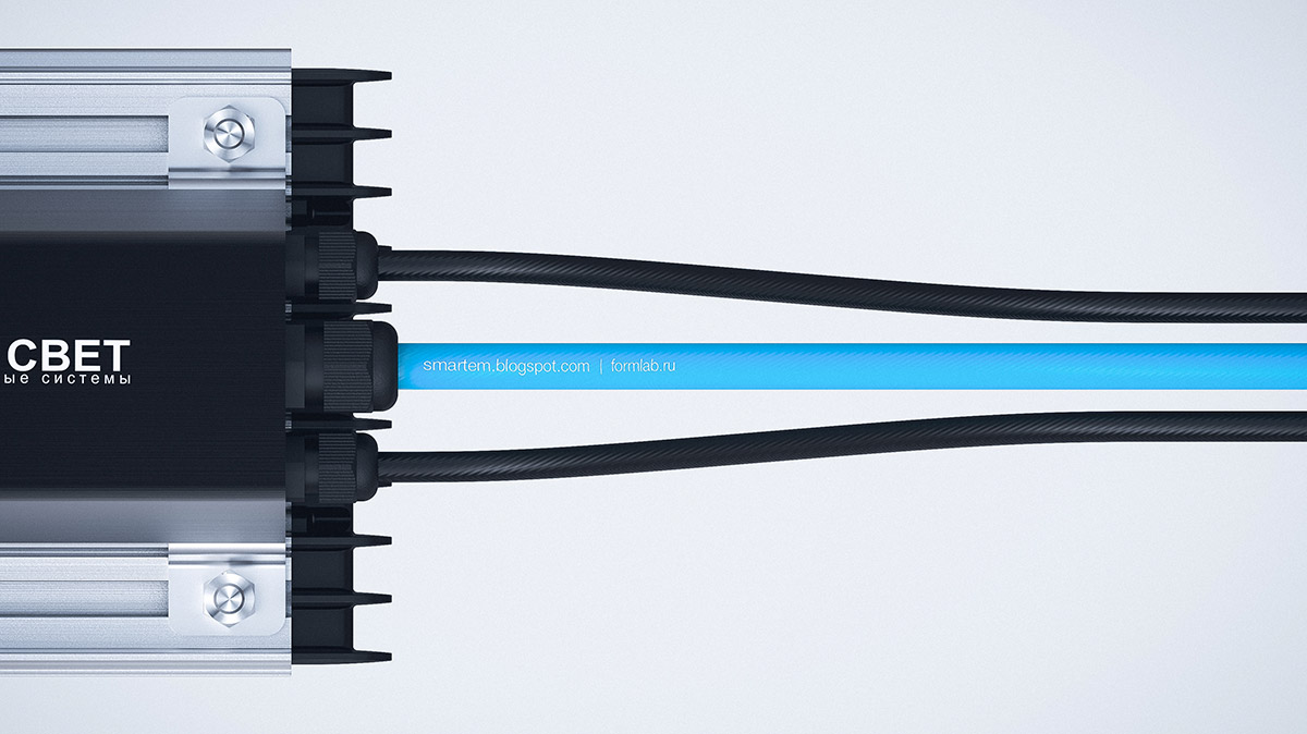 Основные требования: симметричные боковые крышки (чтобы их можно было использовать с любой стороны светильника — раз; для экономии на пресс-формах — два), пыле-и влагозащита корпуса IP67, поскольку никто не знает, в каких условиях он будет эксплуатироваться. Может быть, его установят не в заводском цеху, а на улице).