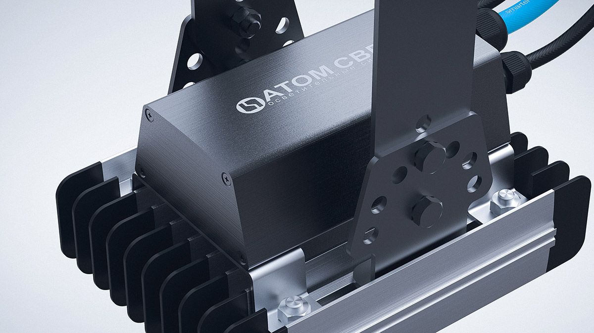 Корпус промышленного светодиодного светильника с одной платой состоит из металлического радиатора с заранее определённой площадью оребрения и корпуса блока питания (он размещается в верхней части светильника), боковых пластиковых накладок и лицевой панели. Для установки светильника используется несколько типов кронштейнов (возможны поворотное крепление, крепление на подвес, консольное и т.д.).