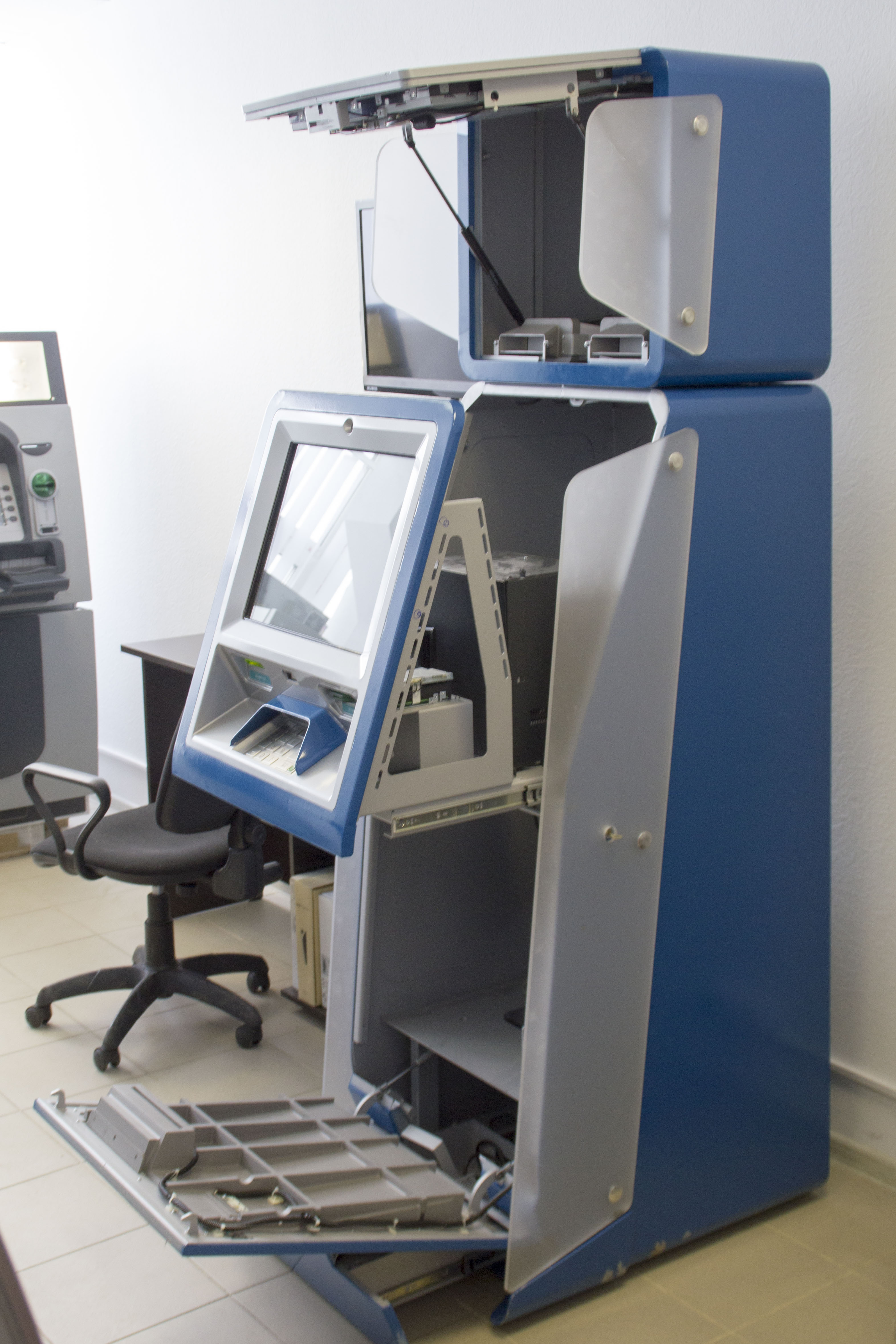 | Что нужно сделать? Параметры заказа | Банкомат должен работать, открываться, закрываться и вообще производить впечатление полноценного продукта, разве что чуть сырого, поскольку это первый опытный образец. 1. Вандалоустойчивый металлический корпус 2. Защита он несанкционированного вскрытия 3. Ограниченные габариты и масса 4. Анкерные крепления к полу 5. Двухзонная компоновка (для инкассации и техподдержки) 6. Конструктивно предусмотренная защита от скимминга (кражи данных банковских карт с помощью спецустройств) 7. Стильный и строгий внешний вид, интуитивно понятный пользовательский интерфейс, светодиодная индикация приема денег, картридера и принтера чеков. |