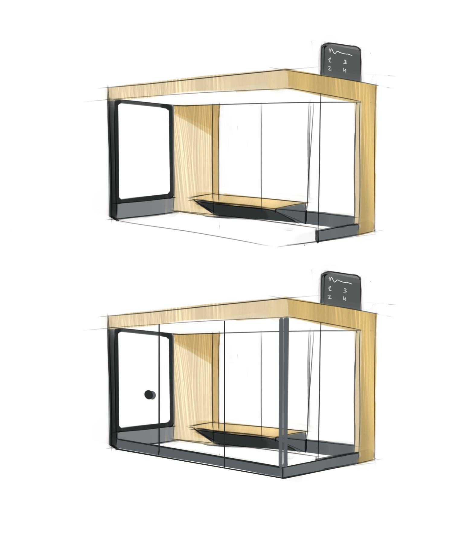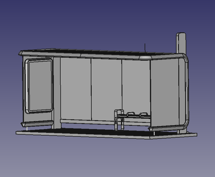Нужна новая модель остановочного павильона: как водится, с интегрированными вендинговыми автоматами, терминалами, пунктами зарядки, камерами видеонаблюдения. Но главная цель разработки — создать такую конструкцию сооружения, которую будет легко перевозить с производства и просто монтировать на месте. Существующая версия не устраивает заказчика именно по этим критериям: доставлять предварительно собранную металлоконструкцию с завода напряжно, да и монтажников нужно нанимать квалифицированных.