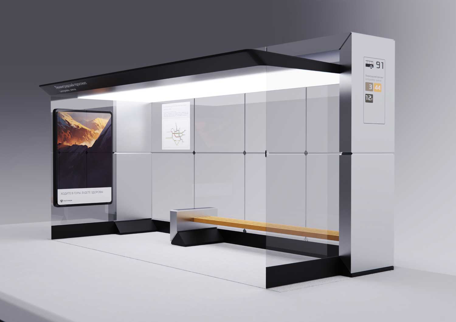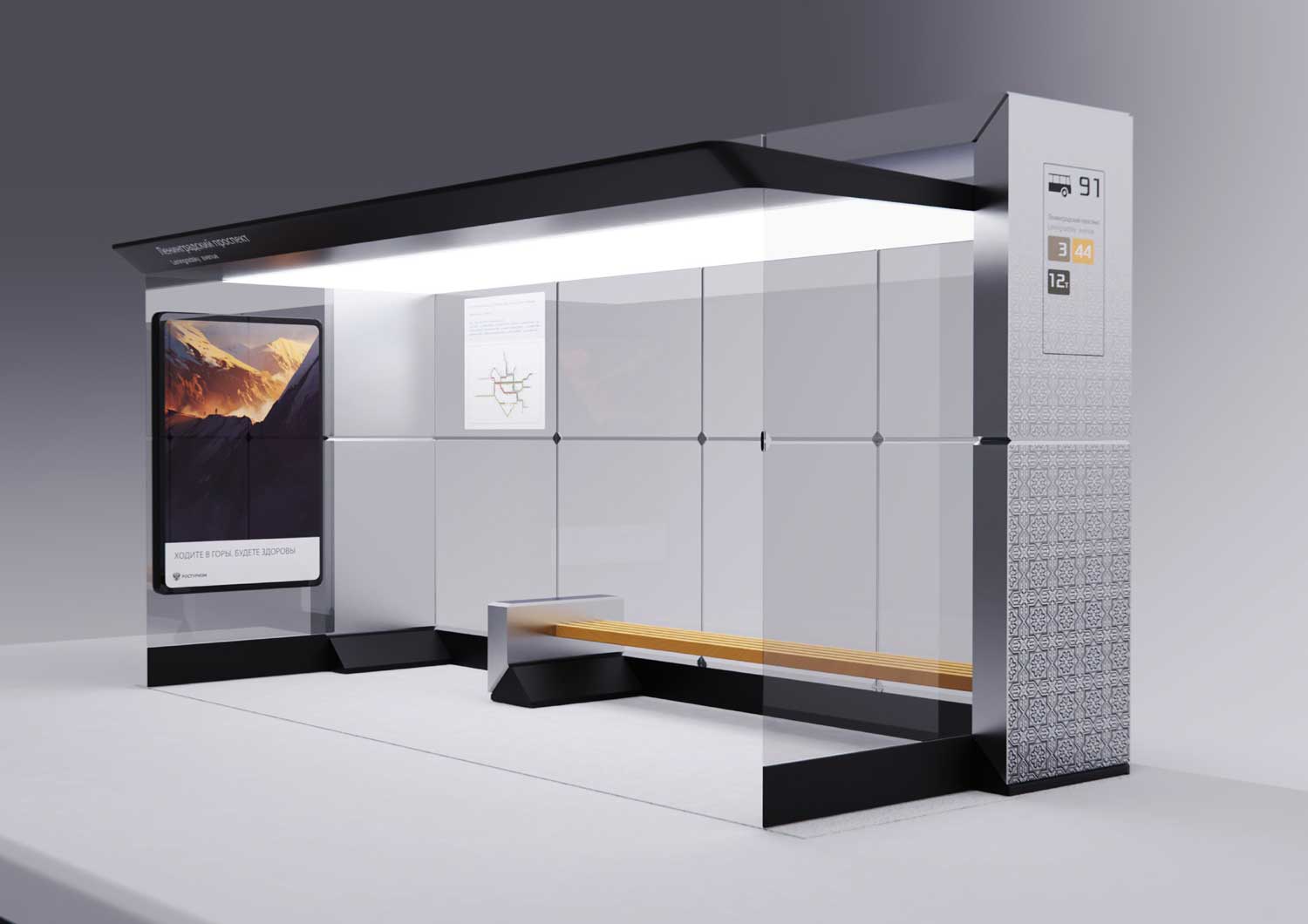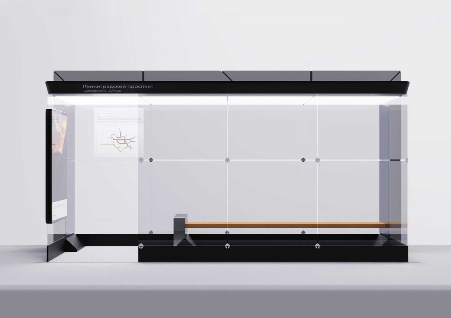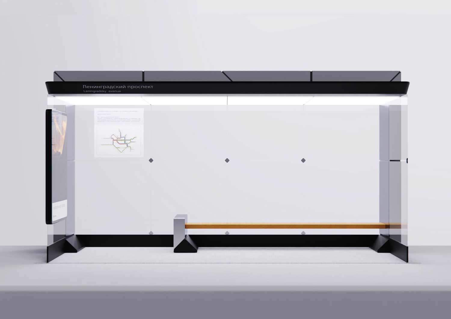 Само собой, на корпусе остановки должны быть места для размещения информационных схем и карт.