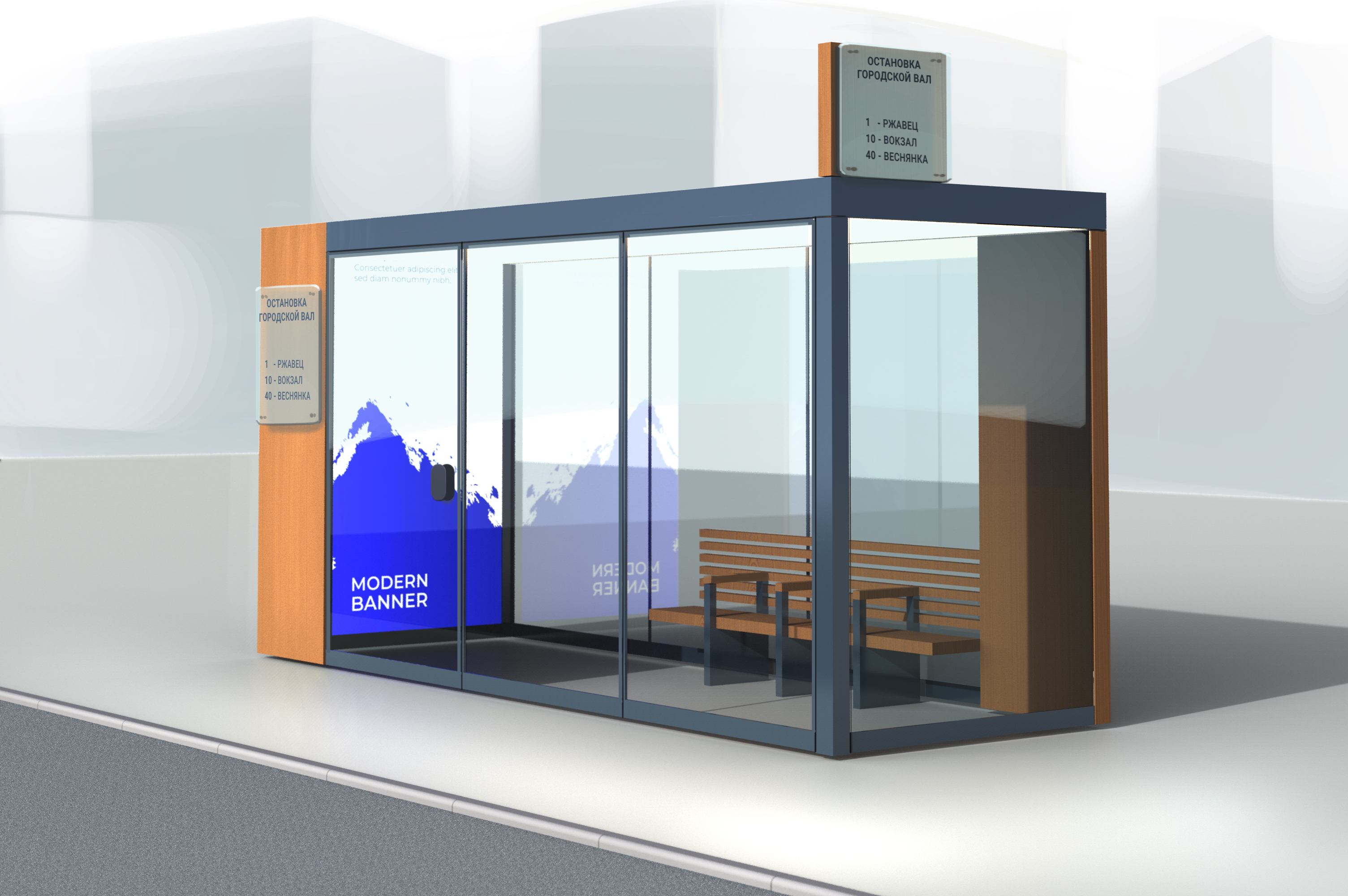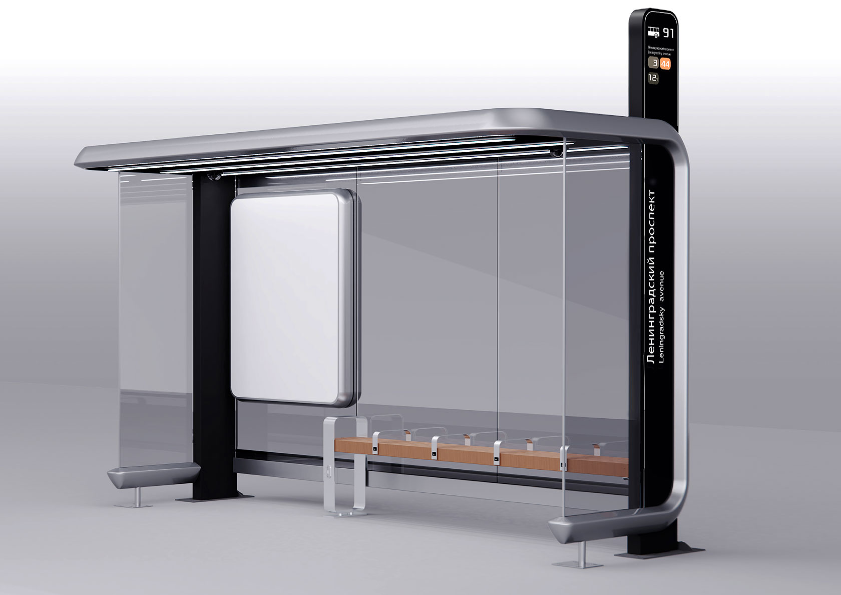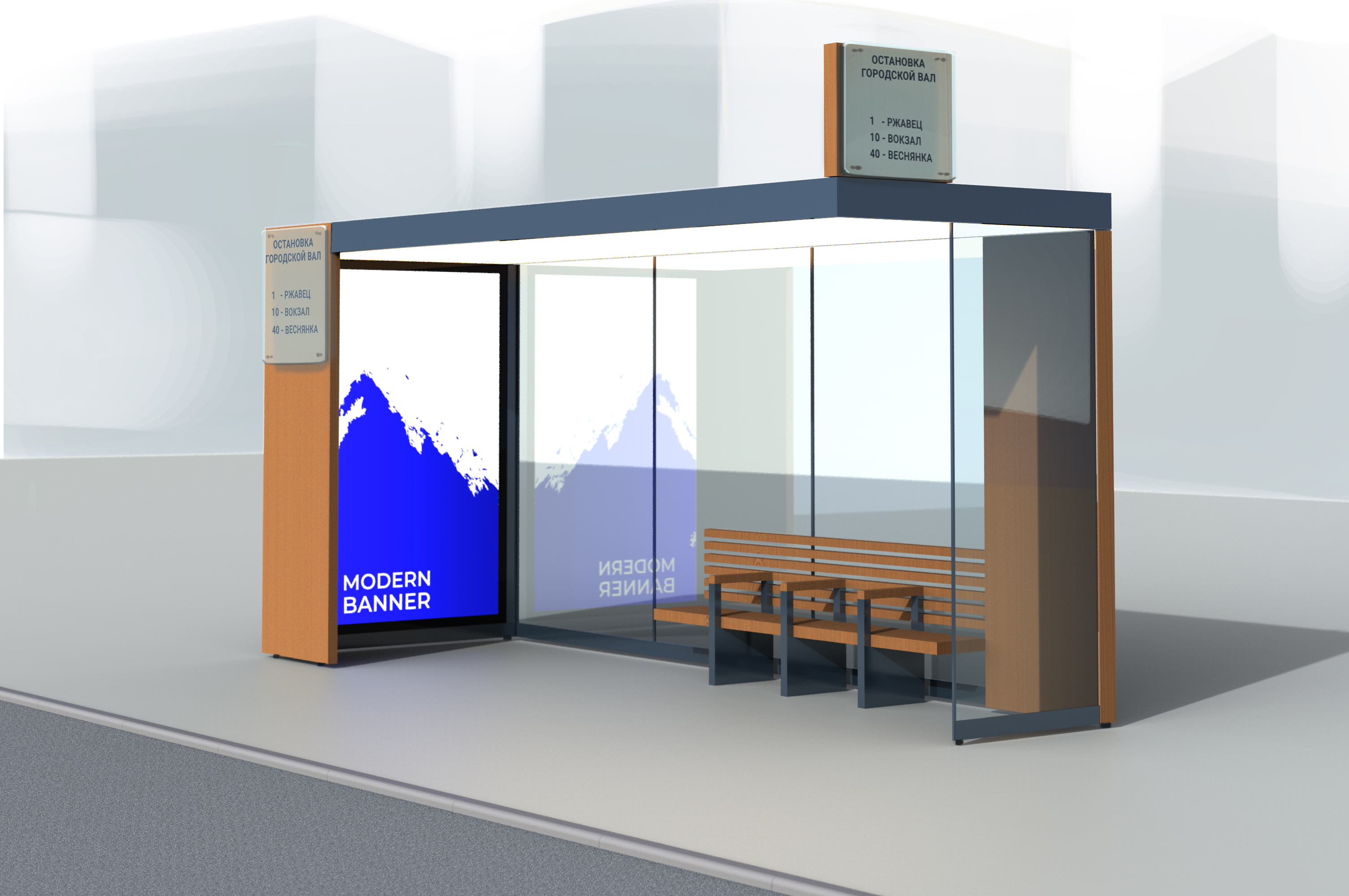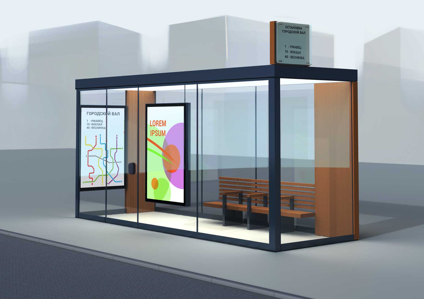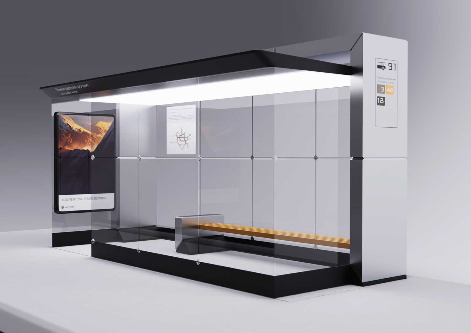 Само собой, на корпусе остановки должны быть места для размещения информационных схем и карт.