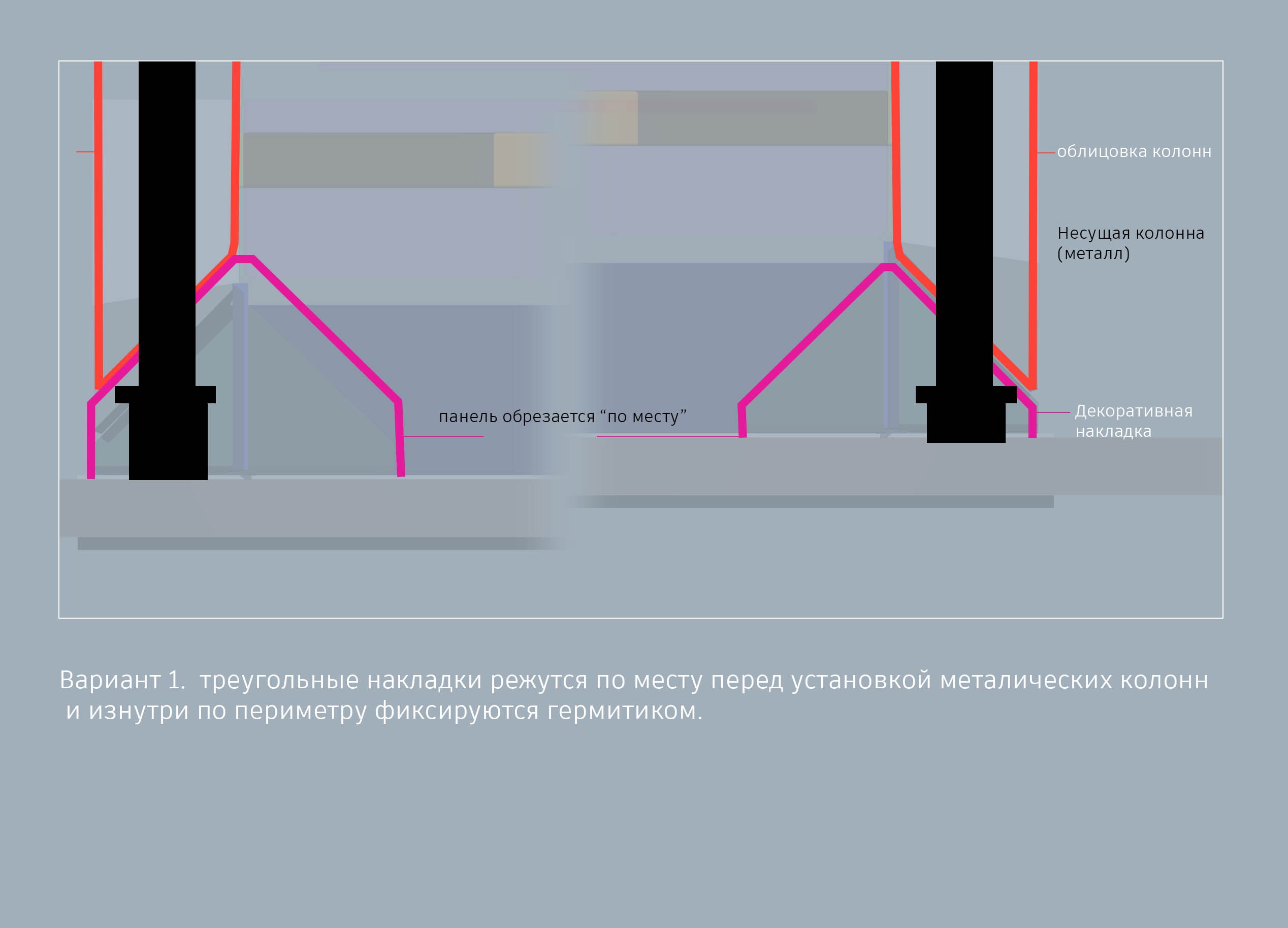 Вы же понимаете, что павильон устанавливается на ровную поверхность. А с таким остеклением, как мы рисуем, поверхность должна быть очень-очень ровной, иначе гарантированы проблемы и с выравниванием стекол, и дальше: под действием вибрации от транспорта они будут смещаться. В реальности идеально горизонтальных поверхностей не будет; значит, нужны опоры, которые будут держать конструкцию строго горизонтально.