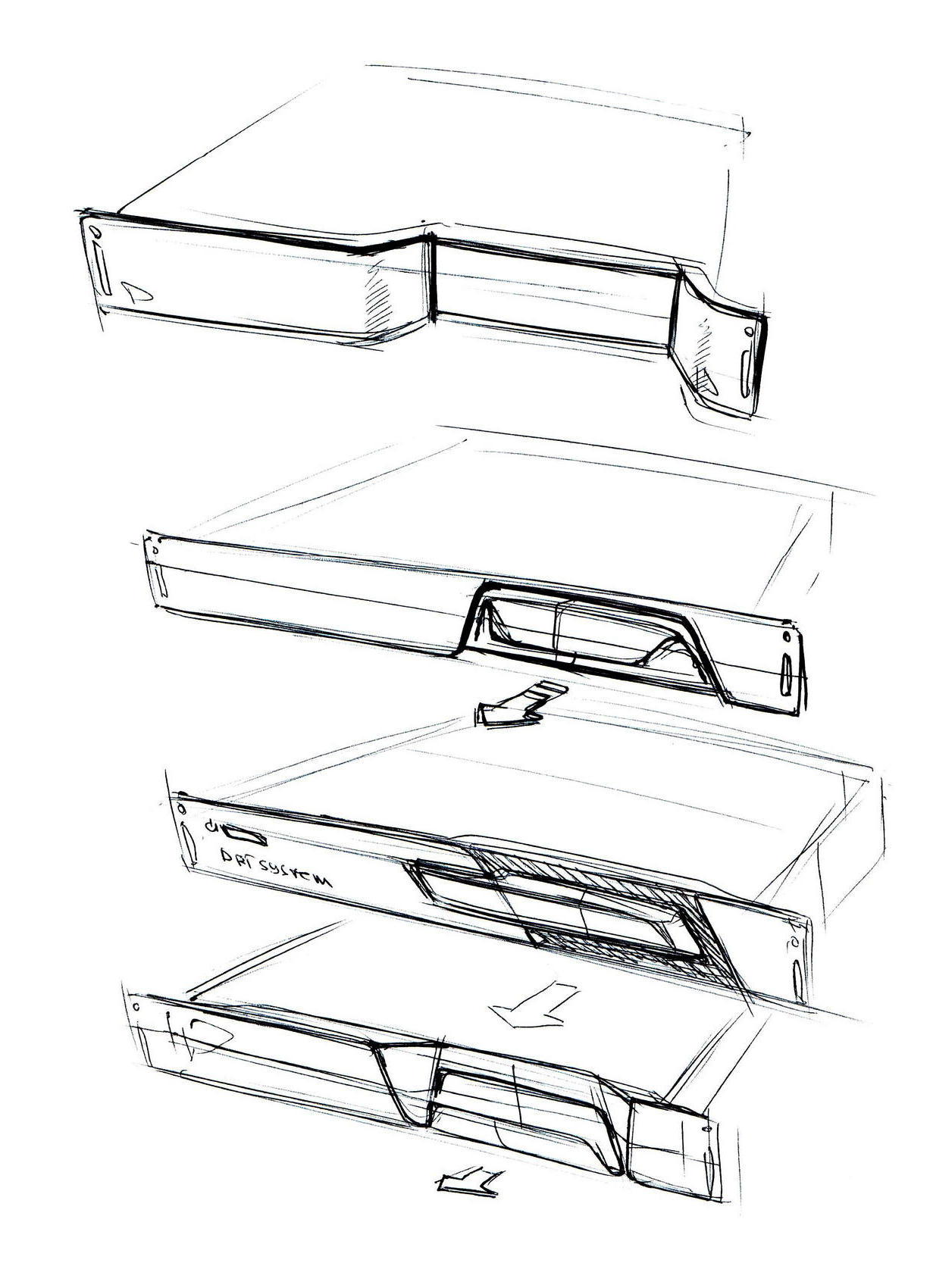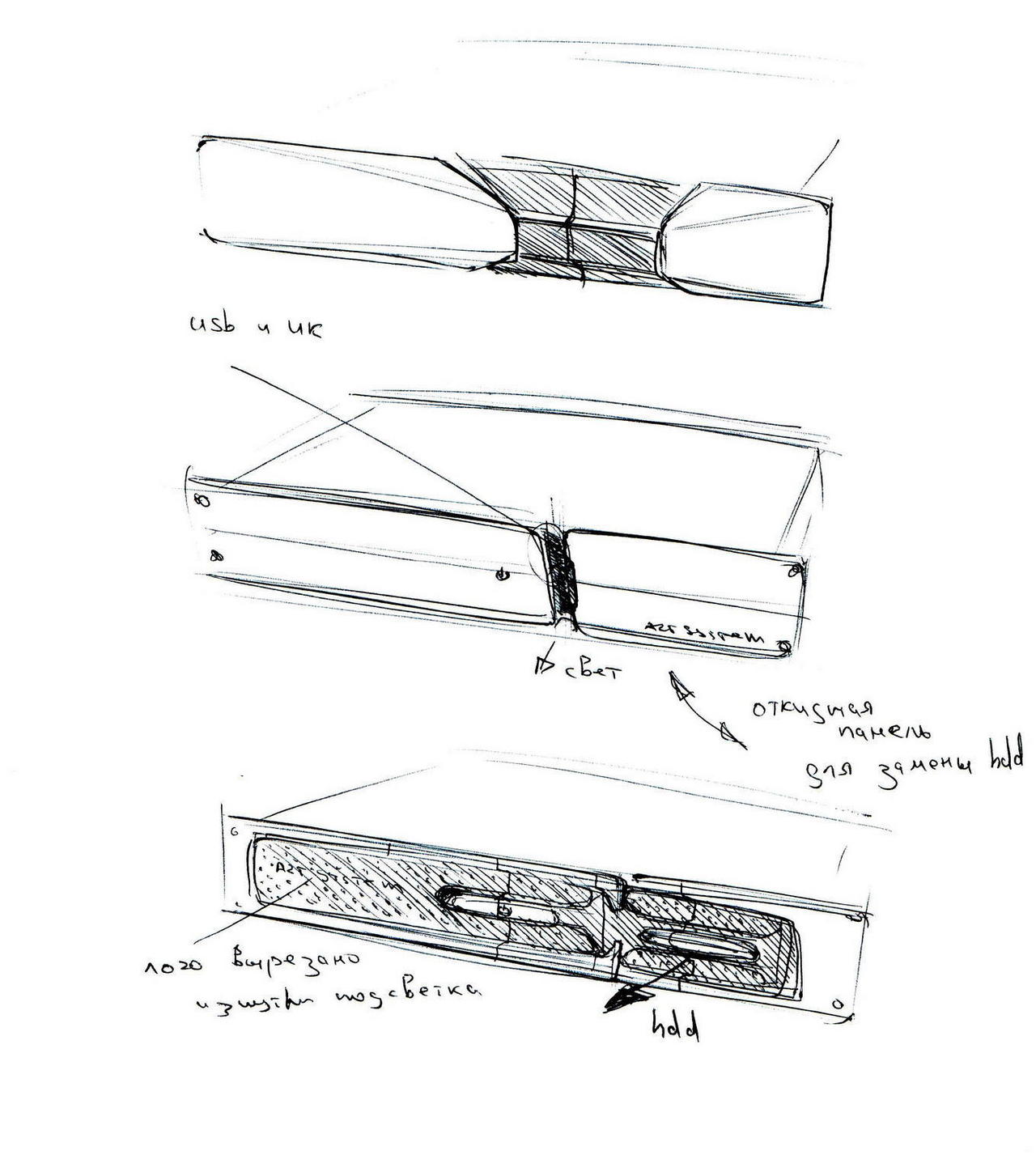 На этом этапе не так критично попадание в габариты, но очень важны пропорции. Поэтому мы, как правило, перед прорисовкой создаём так называемые габаритные коробки, а дизайнер рисует поверх них. Итак, садимся прорисовывать выбранные на прошлом этапе варианты: