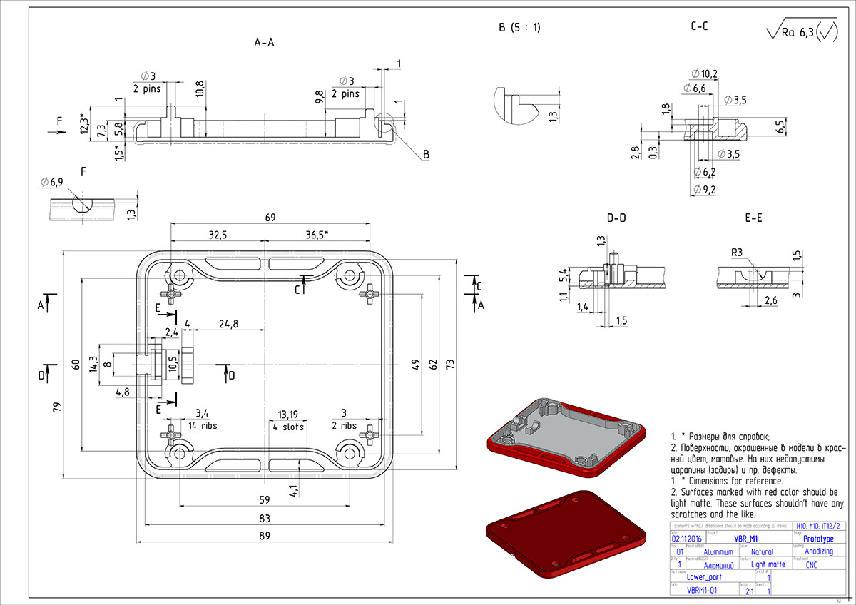 Допустимые технологии производства — литьё / фрезеровка алюминия и/или литьё пластиков под давлением.