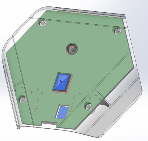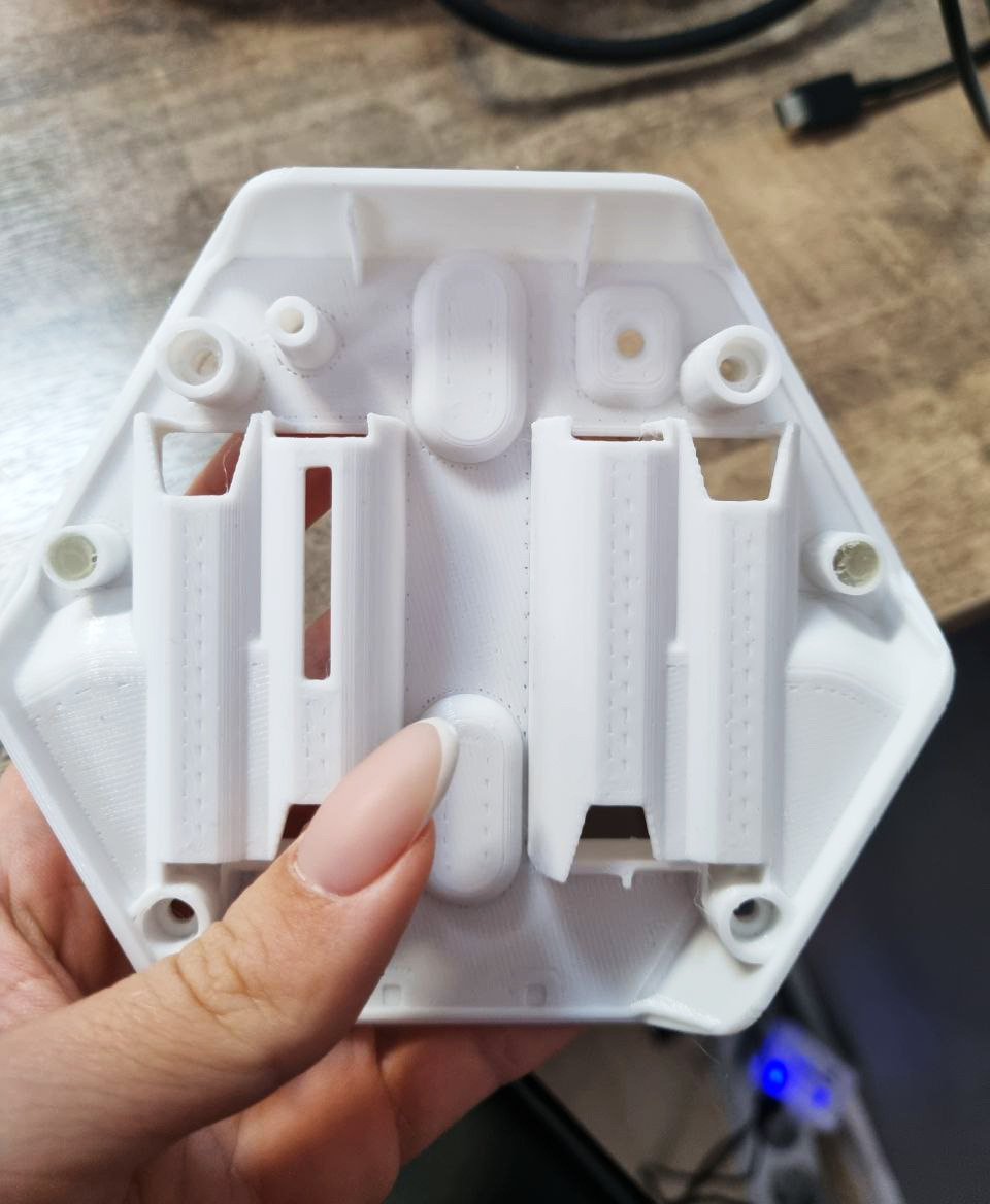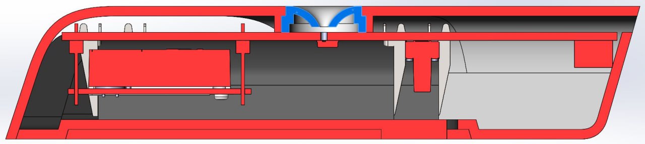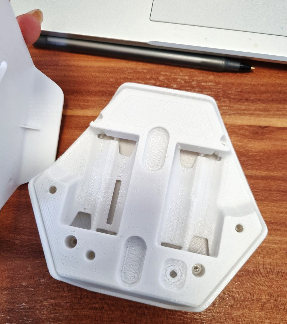 Обновленная эскизная конструкция после правок. Батарейки пользователь заменить сможет, а посмотреть, из чего состоит устройство — уже нет. Сборка — на 4-х саморезах: