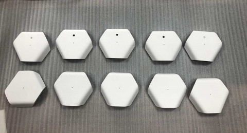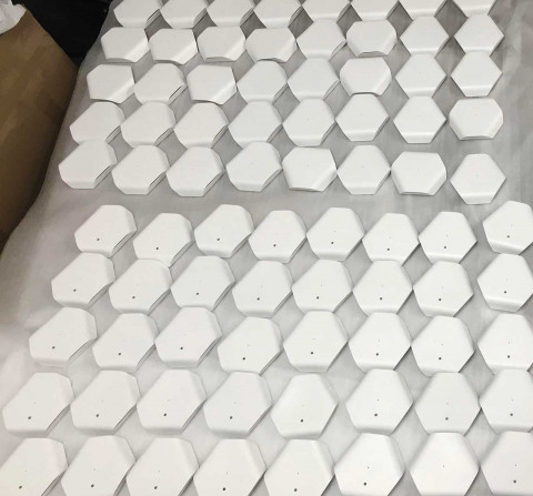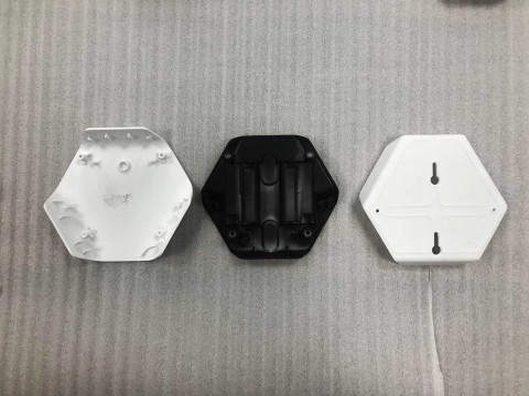 Все для прототипа, включая наклейки, заказывали на одном и том же заводе. Первые фото (крышки с отверстием — для датчика шума/освещенности, без — для датчика углекислого газа):