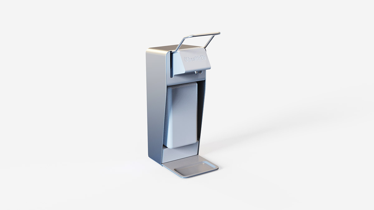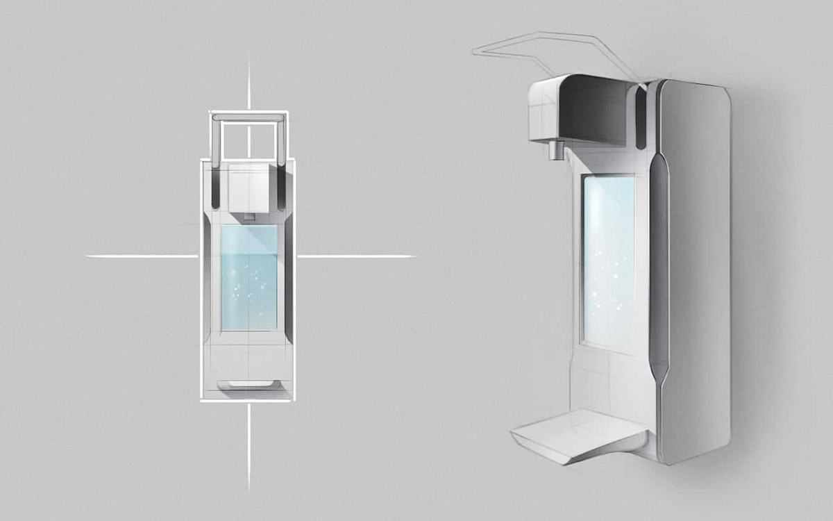 Нужно разработать механический диспенсер мыла и/или антисептиков. Такие ещё называют локтевыми: локтем нажимаешь на рычаг, подаётся порция мыла или биоцида, и всё — руки продезинфицированы или намылены.