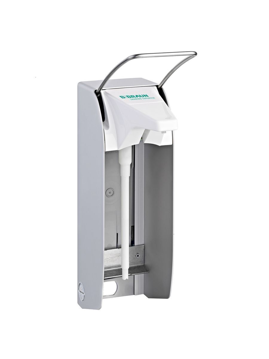 Диспенсер состоит из полиэтиленовой помпы с уплотнителем и со съёмным шлангом (шлангов два типоразмера, в зависимости от вязкости жидкости); ручки-рычага, алюминиевого корпуса, полиэтиленовой бутыли для жидкости; носика помпы и его защиты, поддона для капель и съёмной панели, на которой размещена этикетка.