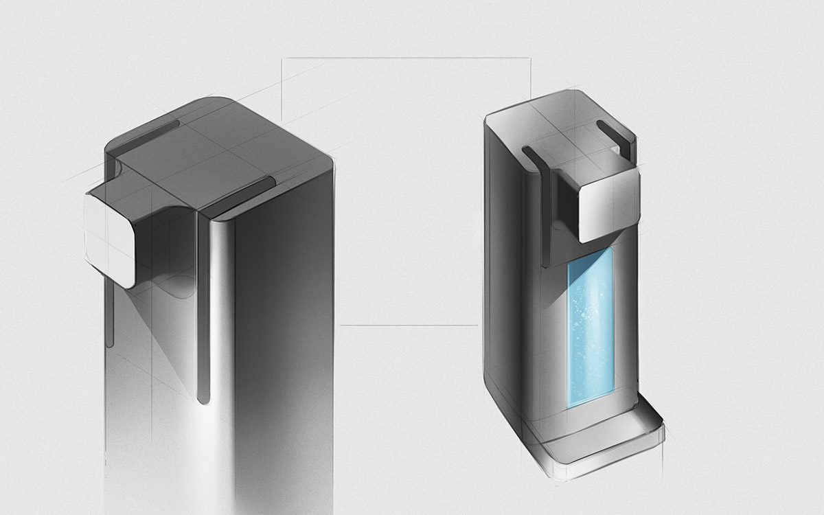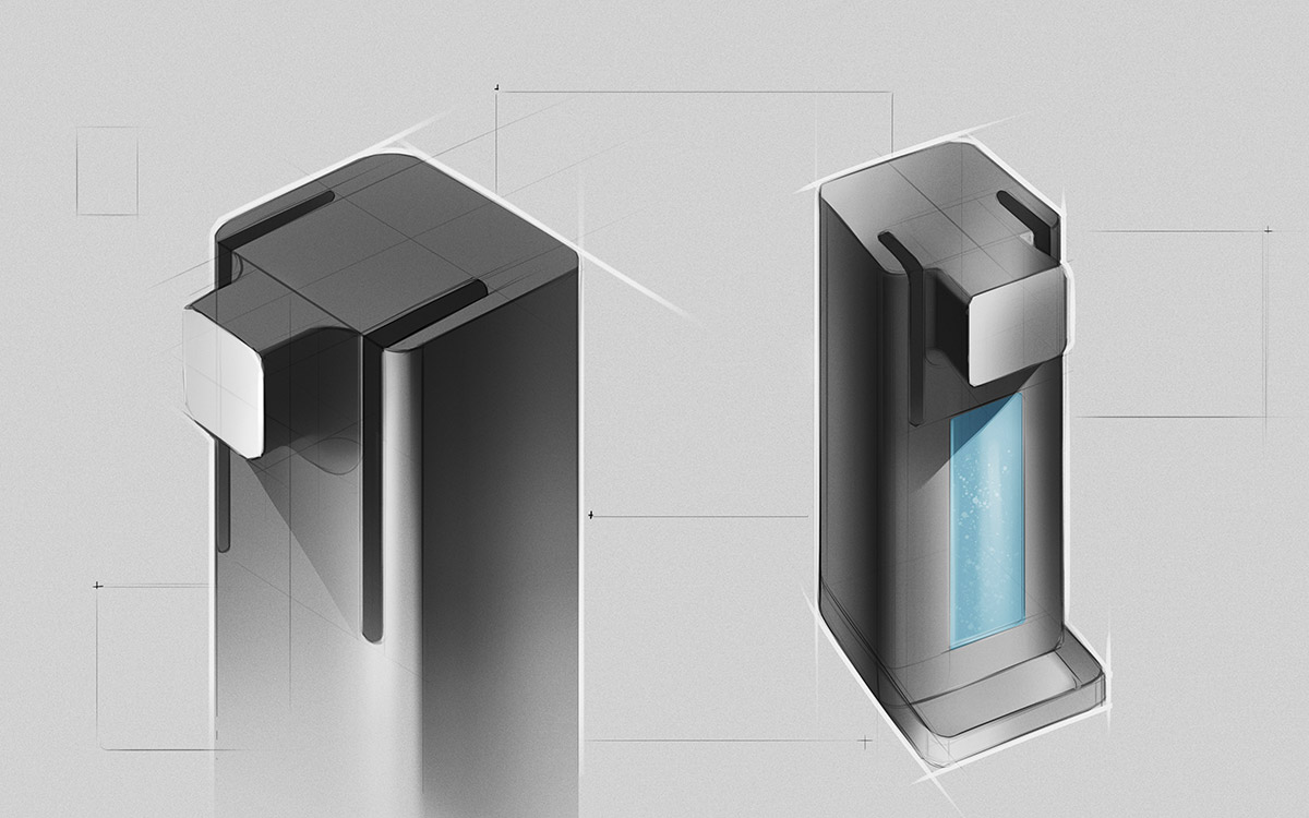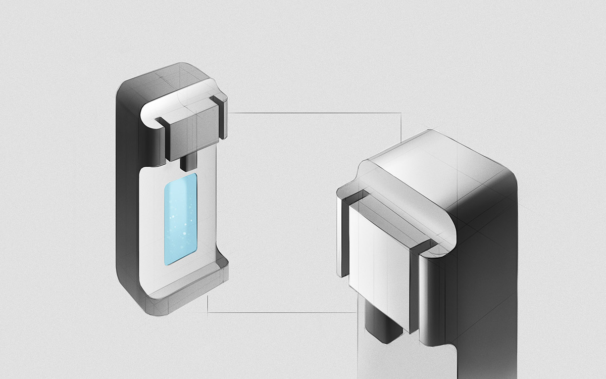 Сложные варианты заказчику не понравились. Один вообще был отметён сразу: слишком похож на диспенсер конкурента.