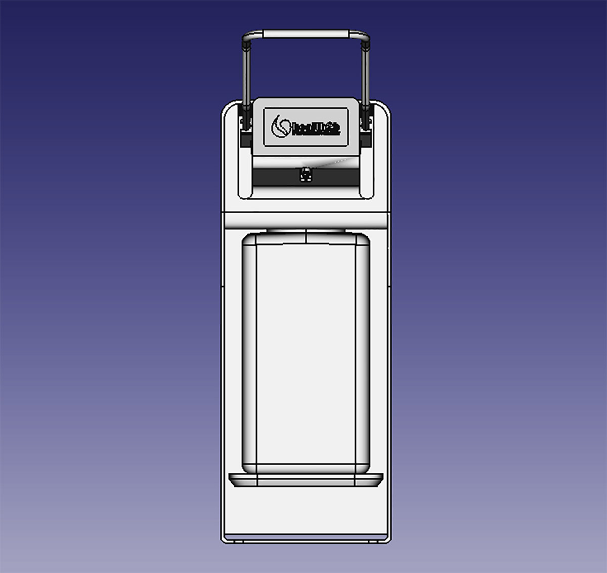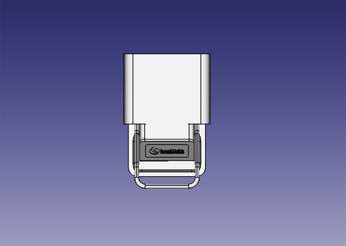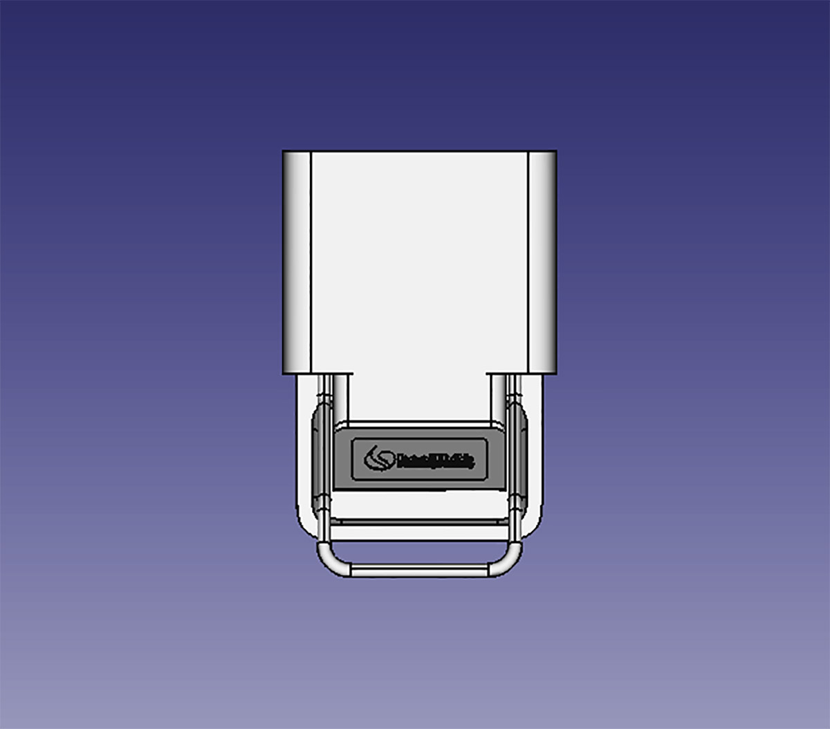 Чтобы реализовать выступ под логотип более изящно, нужно сделать крышку, закрывающую носик и механизм подачи жидкости, не металлической, а пластиковой.