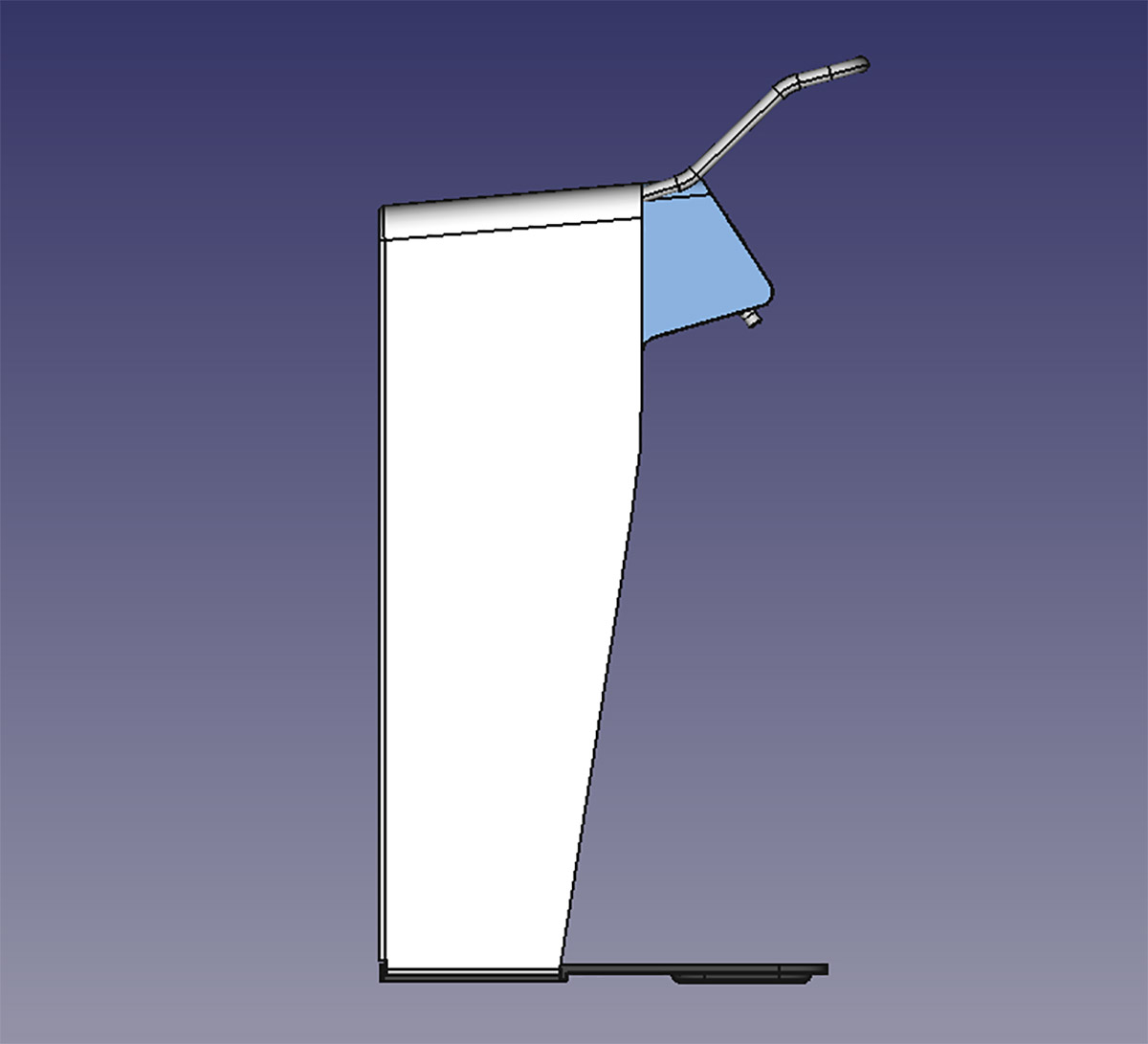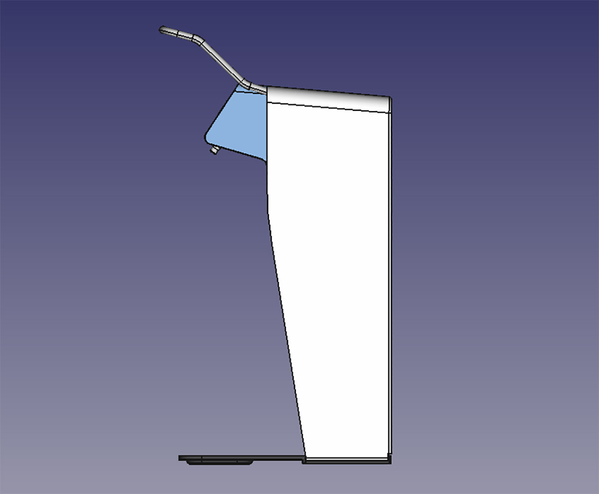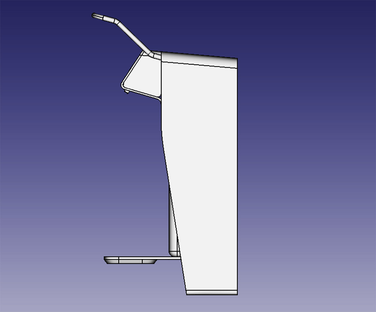 После обсуждения решаем, что вся лицевая панель и выступ под носик будут из пластика. Учитываем, что носик будет подвижным и немного изменит свое положение. А ещё подкорректируем скос стенок — чтобы поддон хорошо держался.