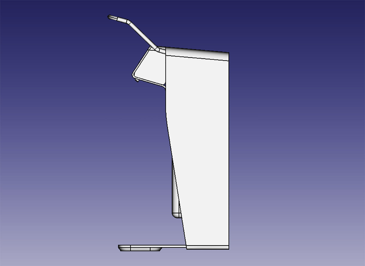 Правки идут полным ходом. Расширяем основание под бутыль других размеров, убираем заднюю стенку, оставляем верхнюю плоскость, но адаптируем её по высоте к размерам помпы и носика, которые прислал клиент.