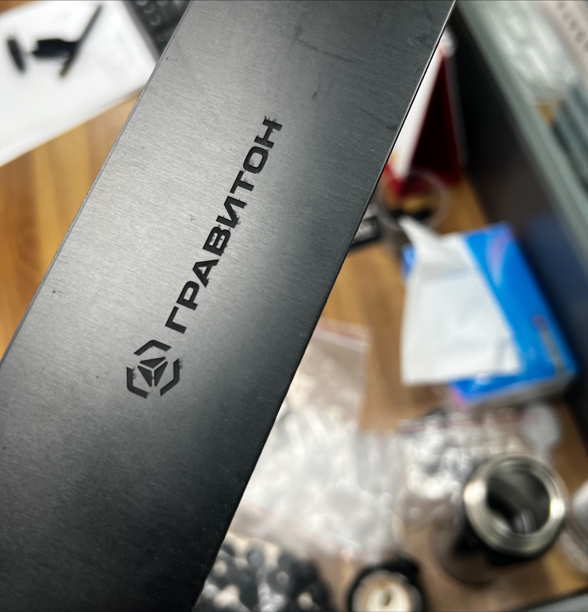 А сначала была мегаидея: черная никелевая наклейка «ГРАВИТОН» «погружается» в буквы, выфрезерованные на корпусе. Вроде бы все получилось, но... завод не взялся такое проделать в «серии». В итоге остановились на нанесение надписи шелкографией.