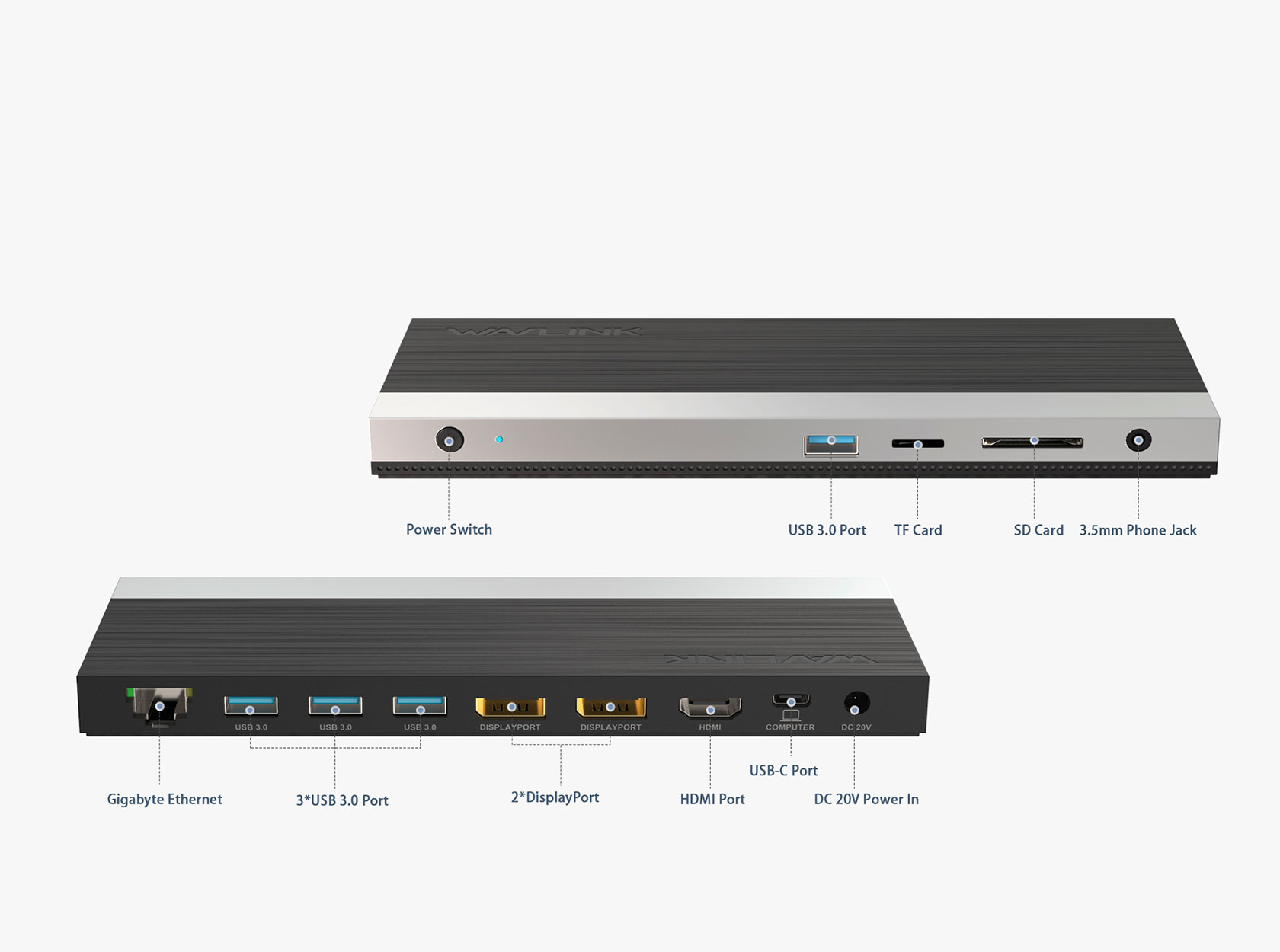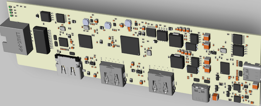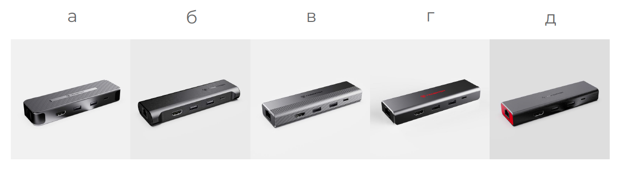 Состав док-станции простой: корпус из металла (или металла с пластиком) и платы с компонентами и разъёмами. Разъёмов будет 6: два USB-A, два USB-C, один HDMI и один — LAN.