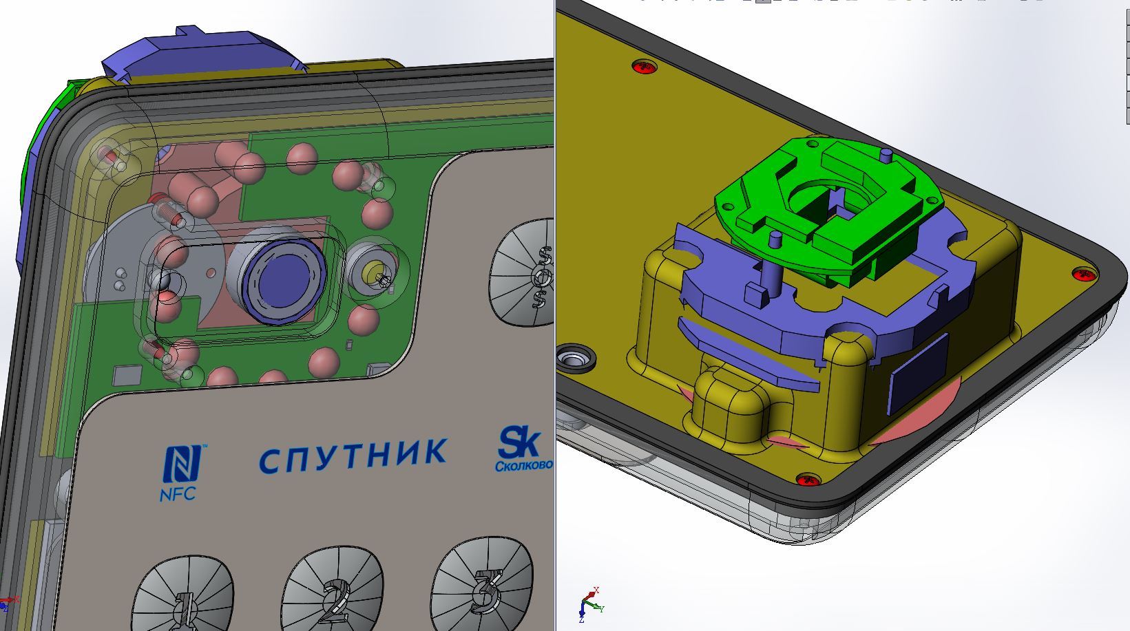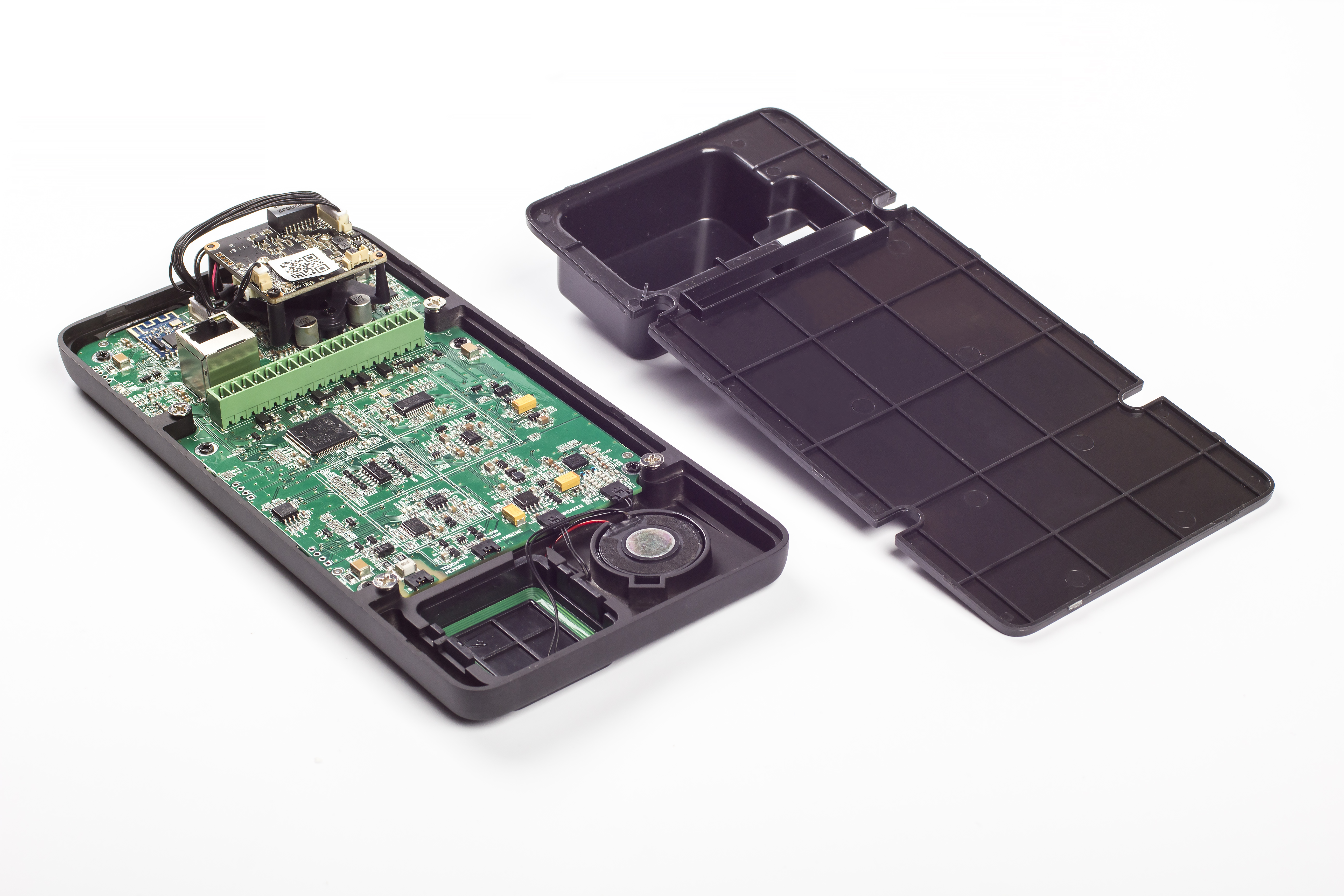 — Если это домофон, то понятно, что в корпусе есть динамик и микрофон. При проектировании первой версии домофона «Спутник» и динамик, и микрофон жёстко закрепили на корпус. В итоге оказалось, что динамик наводил помехи на микрофон через корпус и разговаривать нормально было невозможно. Поэтому в следующих итерациях «Спутника» микрофон закрепили через резиновый демпфер. Проблема наводок была решена.
