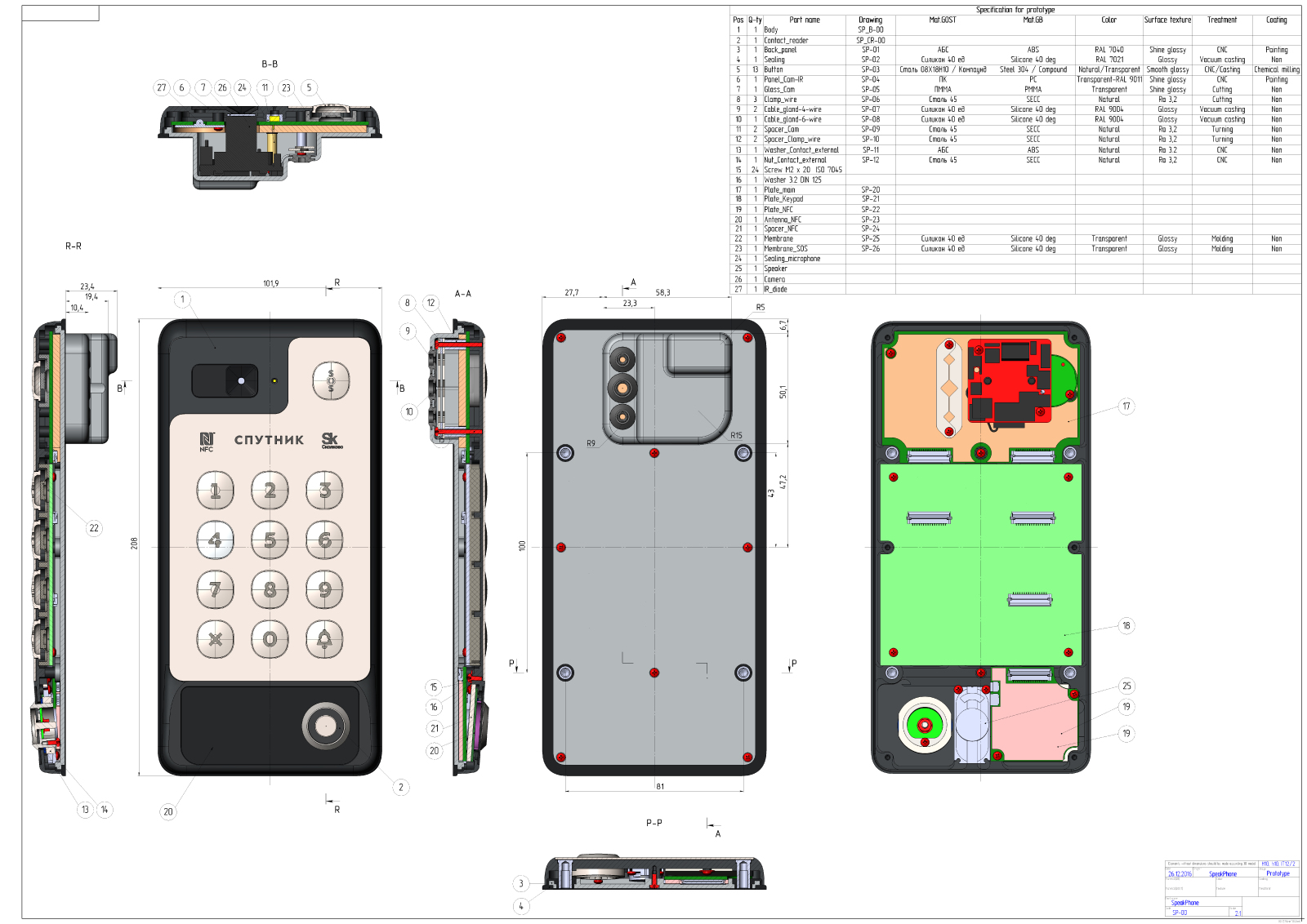 Получилось так, что мы сделали три версии этого домофона. В первый раз это был прототип для демонстрации инвестору. Во второй — заказчик внёс изменения в электронику. А третью версию создавали после того, как вторая прошла полевые испытания, и стало ясно, как ещё можно улучшить конструкцию.