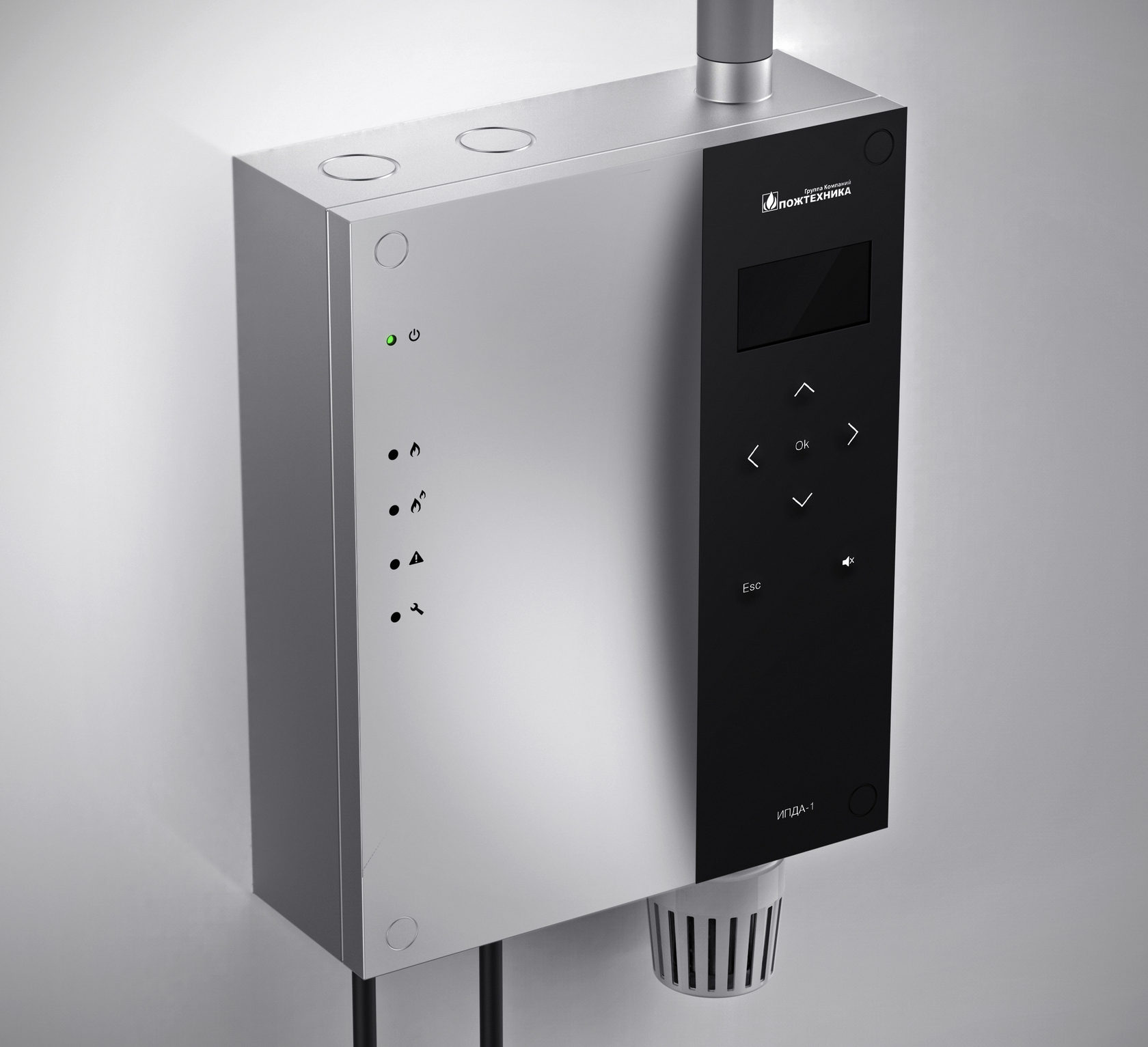 Управлять извещателем можно с помощью мембранной клавиатуры, расположенной на лицевой панели. Там же нужно разместить пять светодиодных индикаторов, три красных, жёлтый и зелёный. IP прибора — 54.