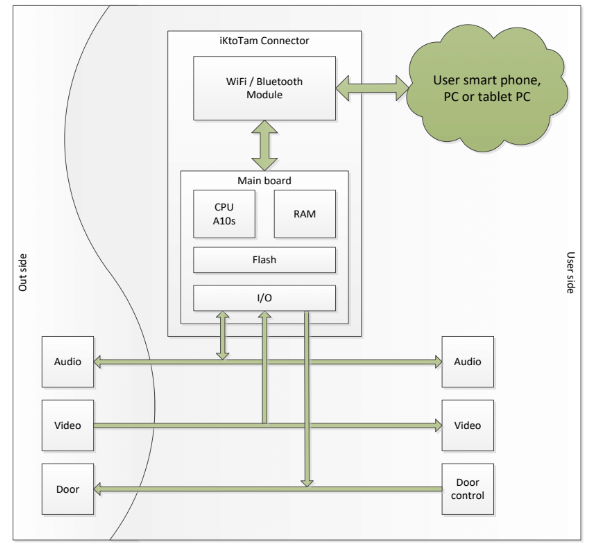 Если звонок позволял всего лишь видеть, кто стучится к тебе в дверь, со смартфона, то с помощью коннектора можно узнать, кто стоит уже перед подъездной дверью, и поговорить с посетителями, и даже открыть им дверь. Для работы устройства нужно было подключить его к общему домофону — соединить два провода, а затем установить приложение iKtoTam. И всё: теперь смартфон может принимать видеозвонки в домофон, а вы откроете дверь гостю прямо с телефона.