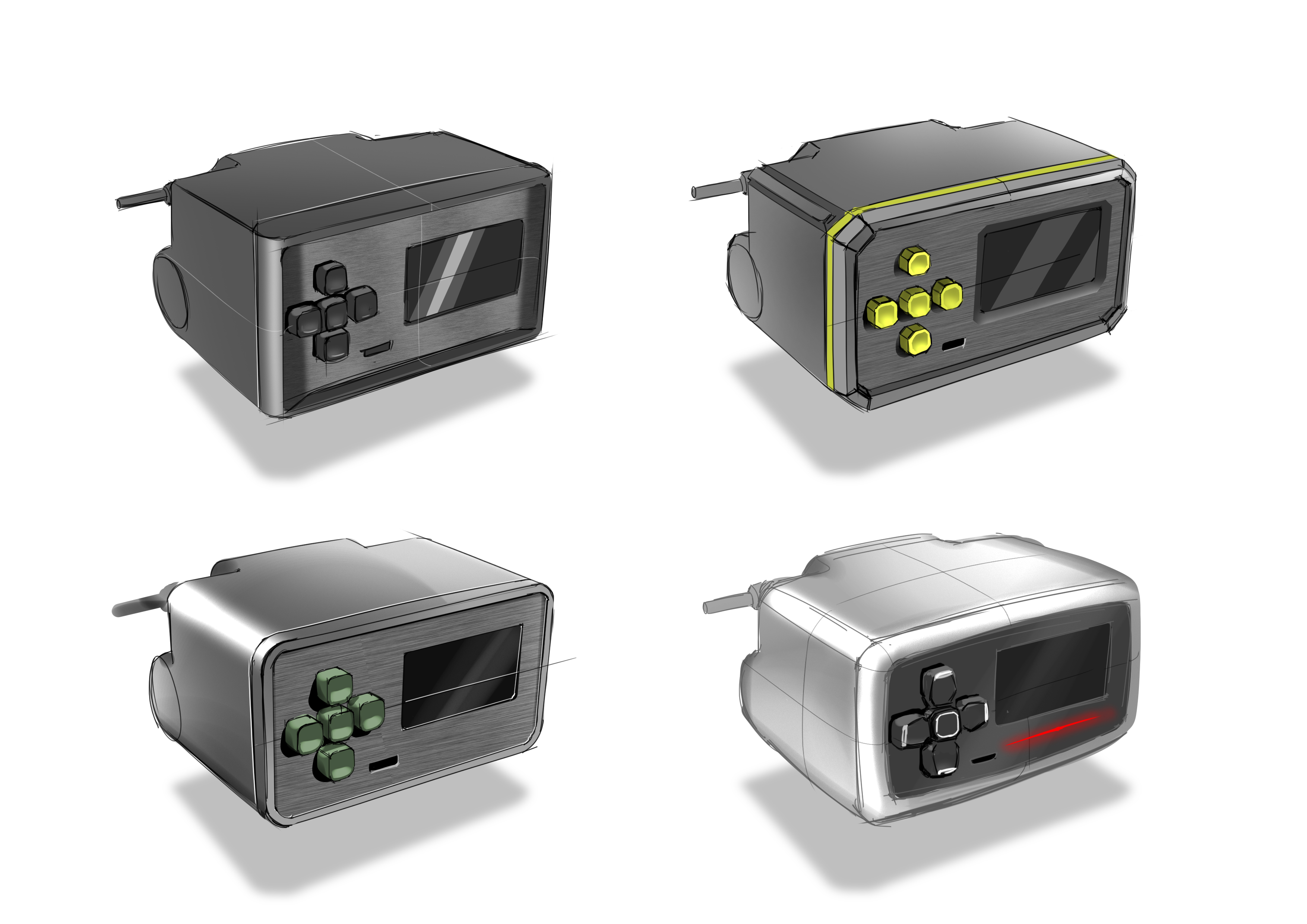 При разработке дизайна надо придерживаться той компоновки и тех пропорций, которые есть сейчас в модели. Можно изменить разве что положение аудиоразъема на передней панели и область индикации (это линия под дисплеем). Корпус будет пластиковым, технология производства — литье под давлением. Передняя панель — алюминий. Материал крышек для аккумуляторов — на выбор разработчика. Цвета — болотный и темно-серый.