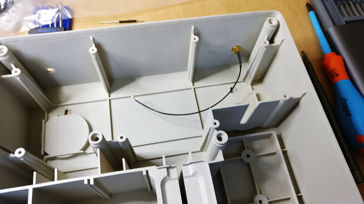 Когда начали перерабатывать дизайн в конструктив, корпус изменился. Изменения — это не антенны (они поставляются в виде опций). Выяснилось, например, что фаски в том виде, как были на эскизе, мы сделать не сможем, потому что крышка должна открываться сбоку, а такая её форма будет мешать нормальному движению. Тем не менее фаски остались на корпусе, просто «ушли» чуть подальше.